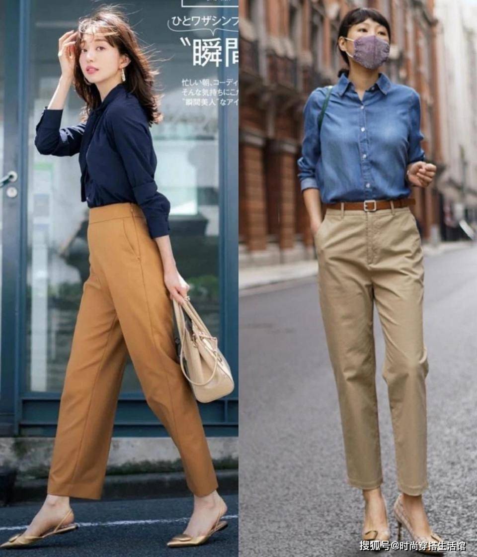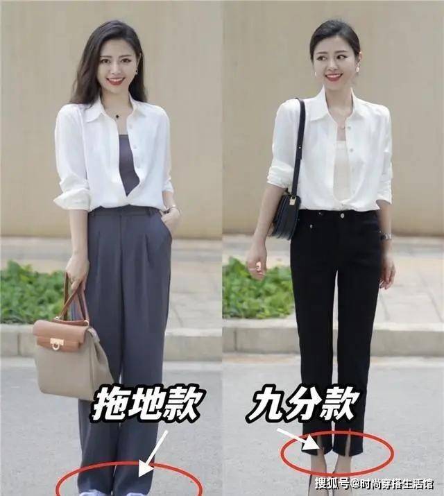 裤子的长度需要根据自己身高来选择,对于小个子来说,九分“奶奶裤”更适合她们穿,露出纤细的脚踝利落又显瘦,而对于腿长的女生来说,可以选择正常的长度或者拖地裤,能更好的衬托出腿长的优势。