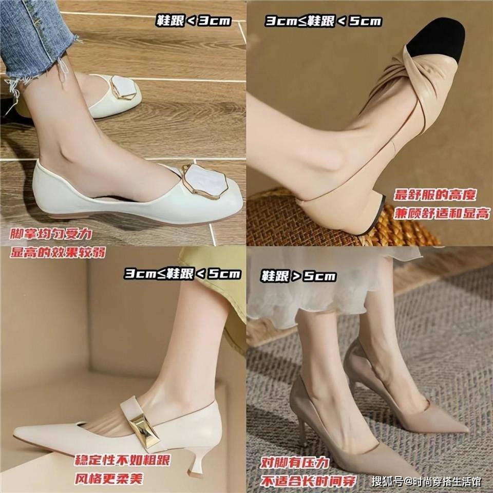 个子矮的女人建议选带跟的鞋子,用高跟的设计来拔高个子。最佳高度是3-5cm,不要过分追求高跟,驾驭难度高,不小心就会崴脚,并且支撑力不强,对于微胖的小个子不友好。如果可以,尽量选择中跟与粗跟的高跟鞋,可盐可甜,适用各个年龄段。