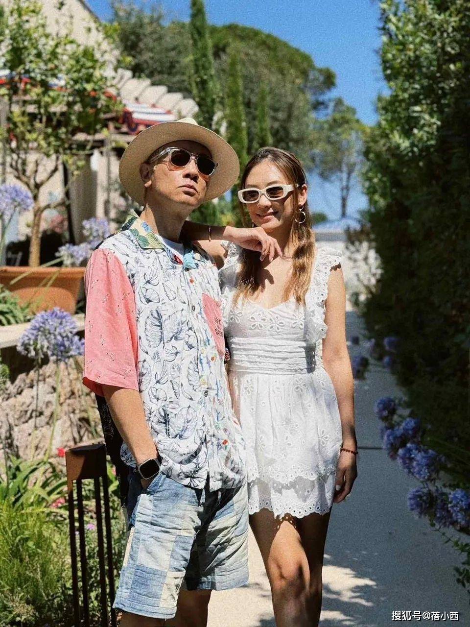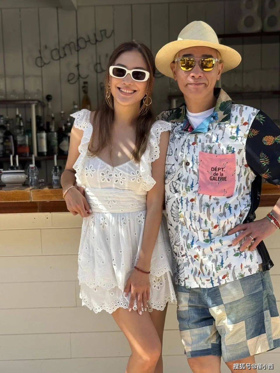 41岁应采儿海边度假,大16岁陈小春穿的花里胡哨,抢镜老婆风头!