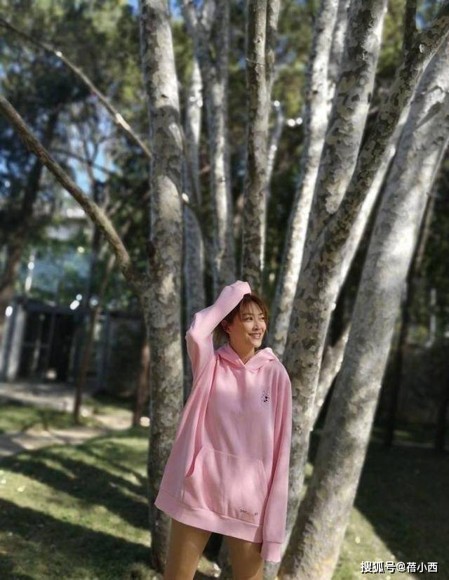 都说黄黑皮不适合粉衣服,可是这件粉卫衣穿在应采儿身上,却甜美淑女感十足。这件卫衣外套更是显得应采儿看起来娇小了许多,可见卫衣还是不能选择太修身的,略微宽松的卫衣刚好盖住臀部,才能穿出下衣失踪的风格,又甜又辣。随便搭配一双运动鞋,都很有少女感。