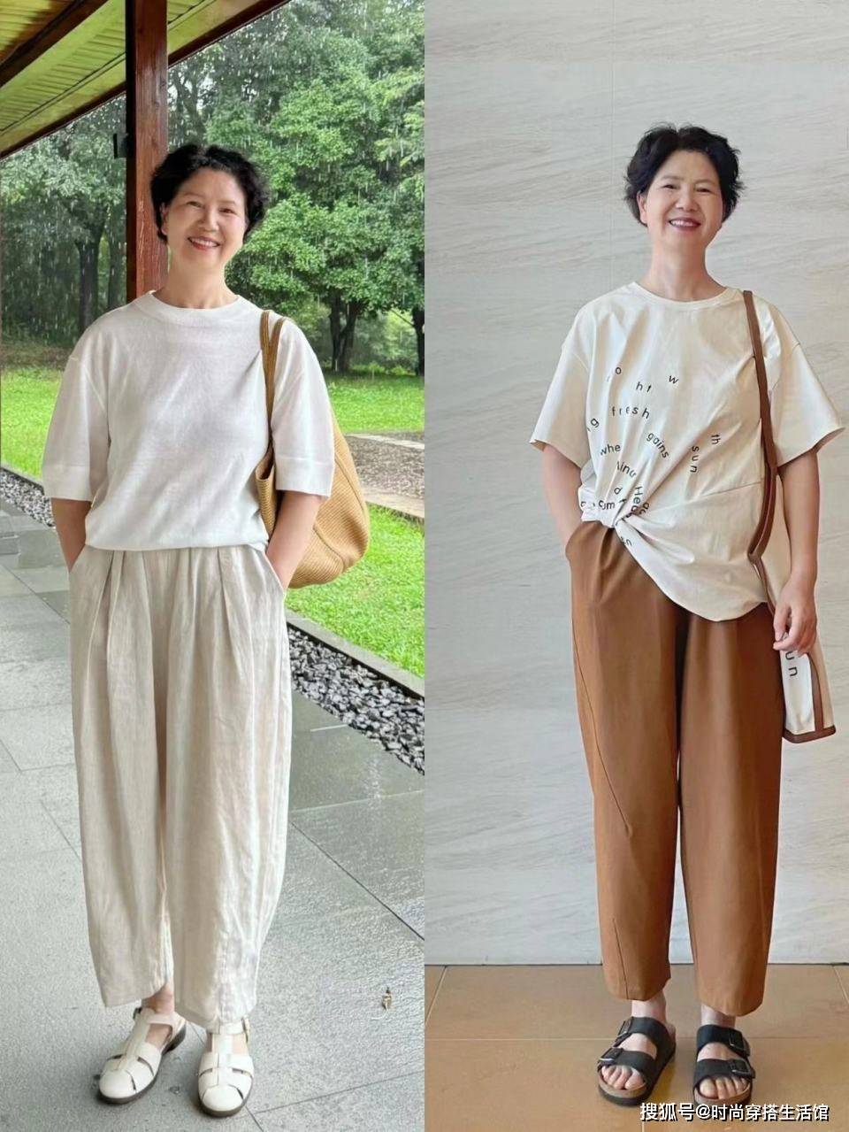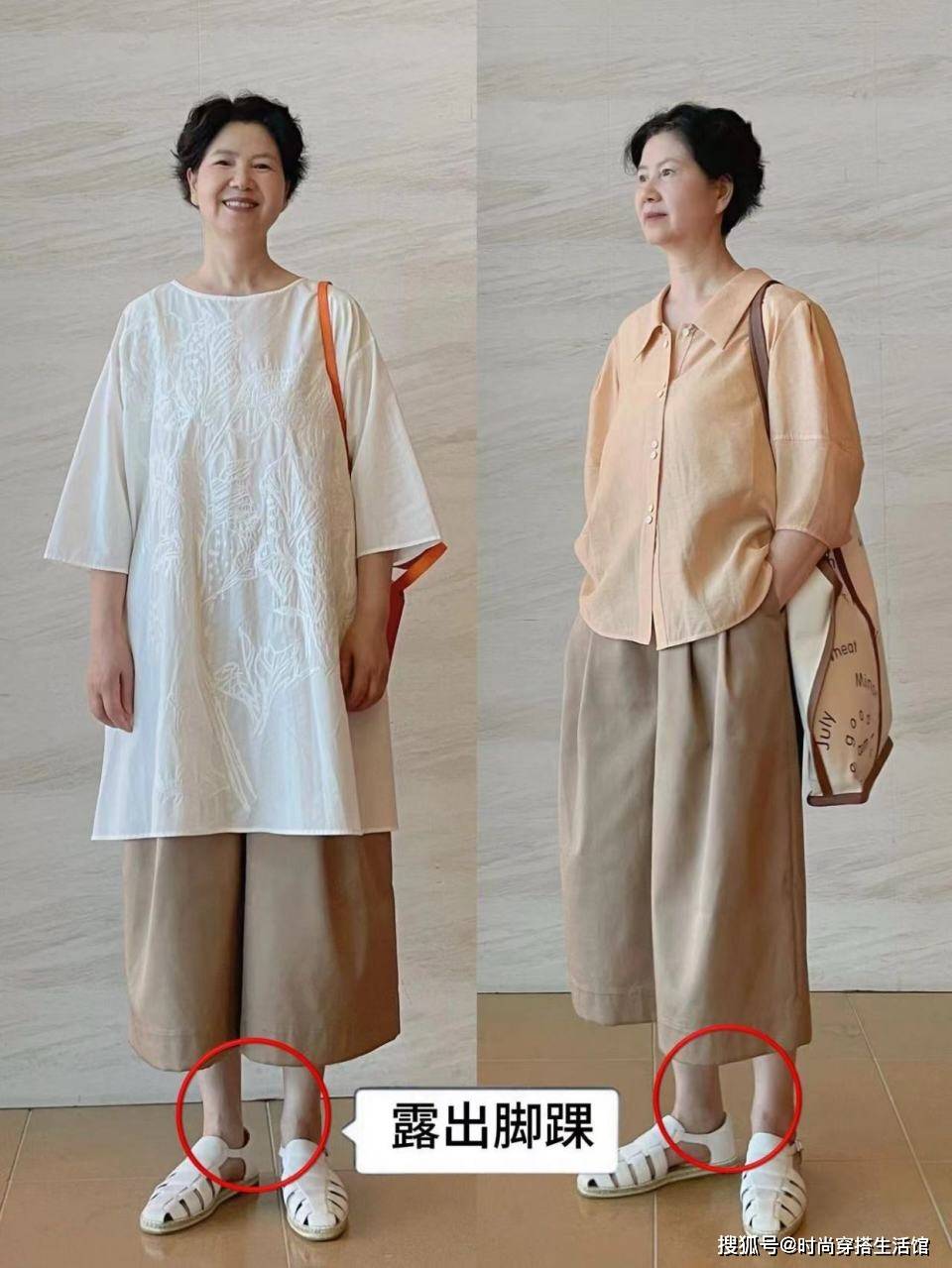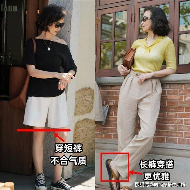 五六十岁女人,适合“短裤”还是“长裤”?看这3组对比就知道了