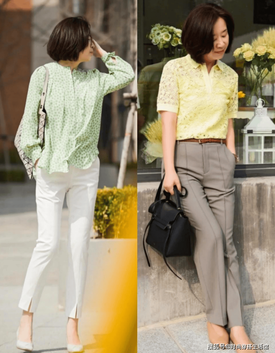 穿裤子时想要避免沉闷,那就一定要保持适度的露肤度,轻松可以打造出“视觉轻盈感“,高级感十足还清凉显瘦。