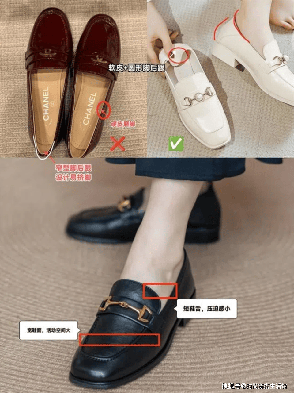 乐福鞋是典型的无鞋带、宽鞋舌式单鞋,有中性廓形的休闲,亦有细腻皮革、鞋面装饰带来的优雅。 选款只需满足“舒适性、美观性、易搭配性”这三个特征,就能拒绝磨脚、挤脚等烦恼!时髦精们早就总结好了选款要点。