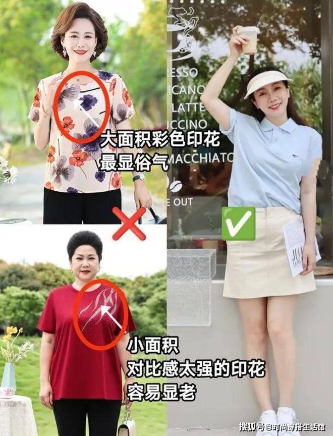 第二种:太老气的图案和花色T恤显老气