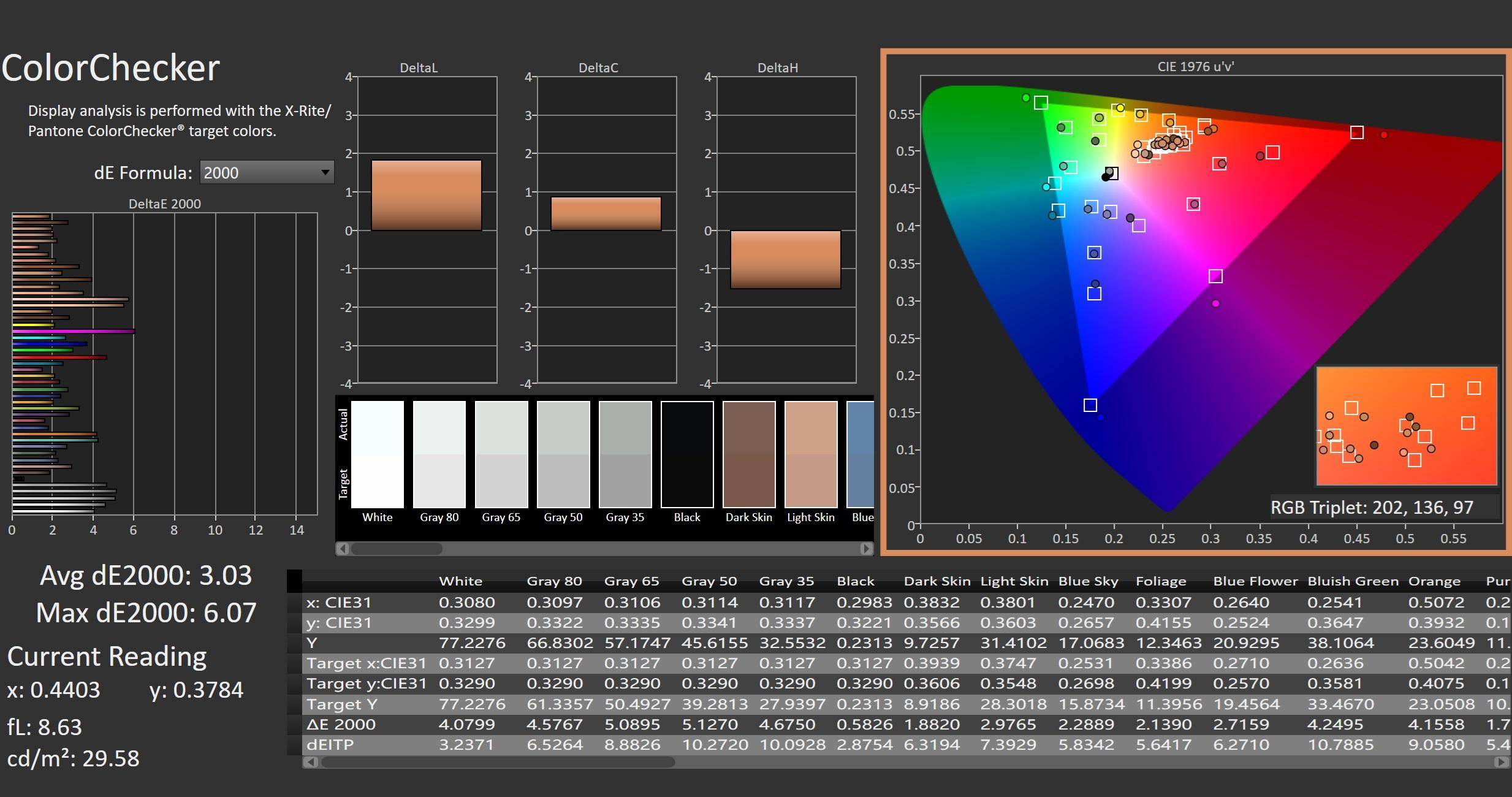 W90A的色准比我们手头这个W95A要好,Filmmaker模式ΔE平均在3左右,用户应该看不出色彩有什么问题,也算达到了开箱即用的及格线,如果用户有设备稍微调整一下白平衡的话,那么色准表现会好上大一届。白点默认色温测出来要偏高一些,但问题不大,不用去可以调整。伽马值的表现也要强于我们手头的W95A,在SDR默认状态下至少显得不是那么亮。当然厂货的表现,不能保证每一台类似,这里只能当参考。