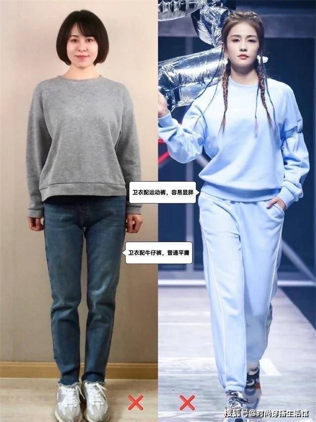 对于很多普通女孩来说,身材没那么高挑纤细,并且还拥有五五分、下身臃肿以及腿粗的现象,所以穿卫衣就更不能轻易搭配牛仔裤了。无论是紧身牛仔裤还是宽松牛仔裤,跟卫衣进行组合,都会瞬间显胖一圈。
