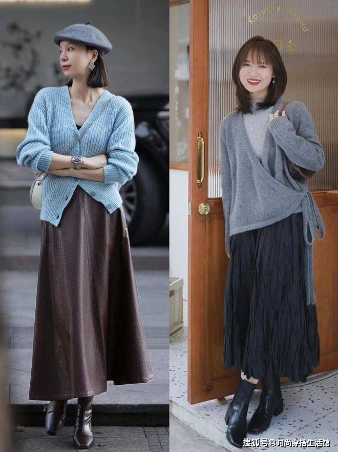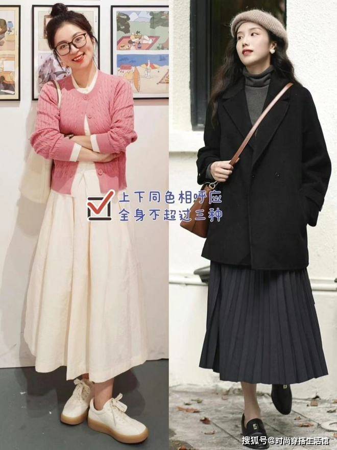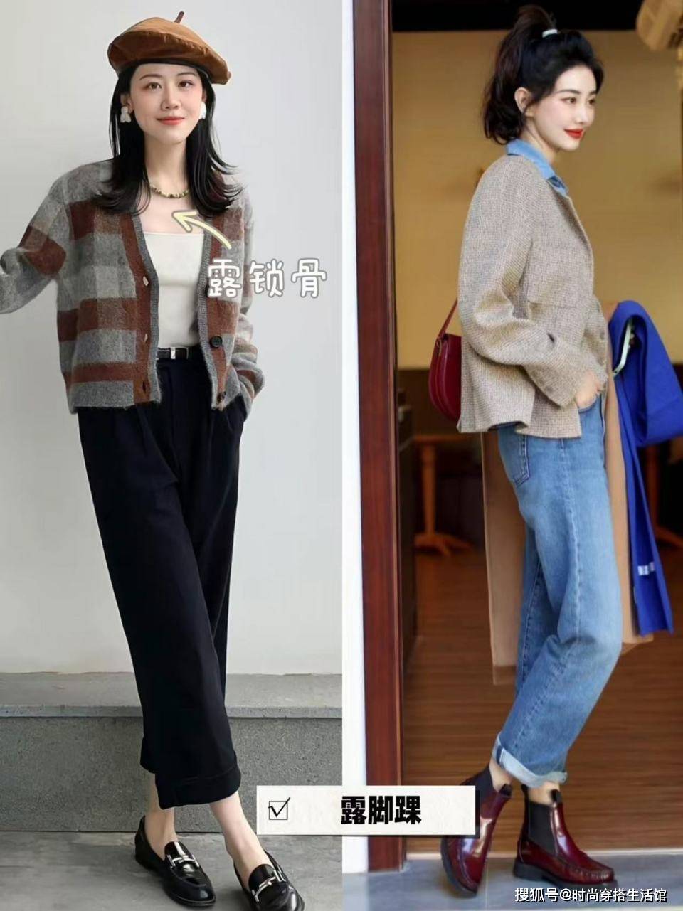 思路③露出脚踝,九分裤或半身裙避免臃肿