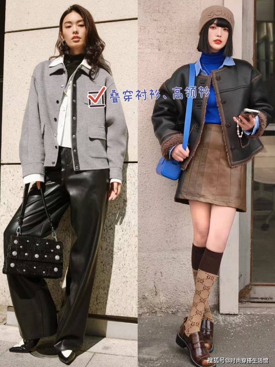 思路②上身叠穿,去丰富整体造型的层次感