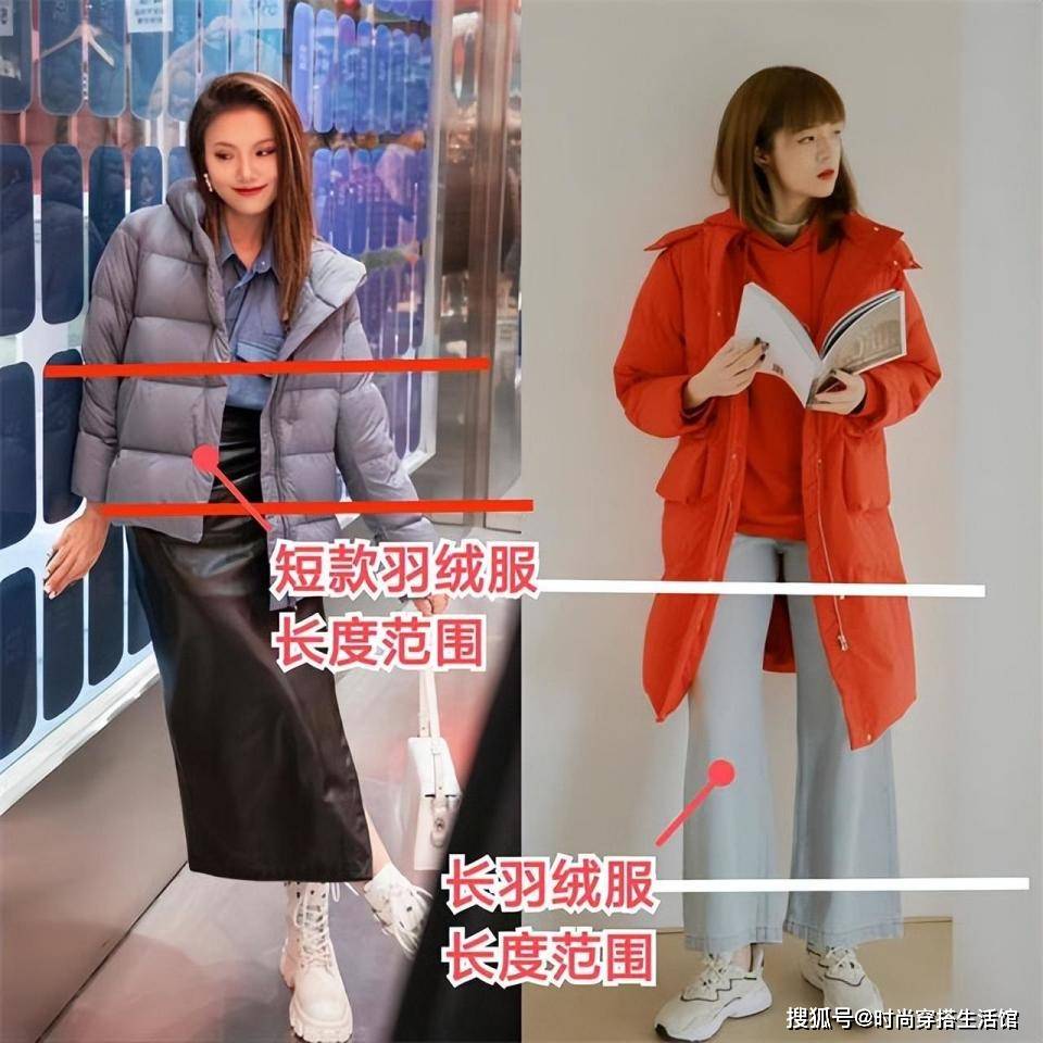 在挑选羽绒服的时候,短款羽绒服比较简约适合小个子,简约利落不厚重。长款羽绒服更适合高个子,可以体现大长腿,遮肉显瘦的效果都会非常不错,时髦度很高。