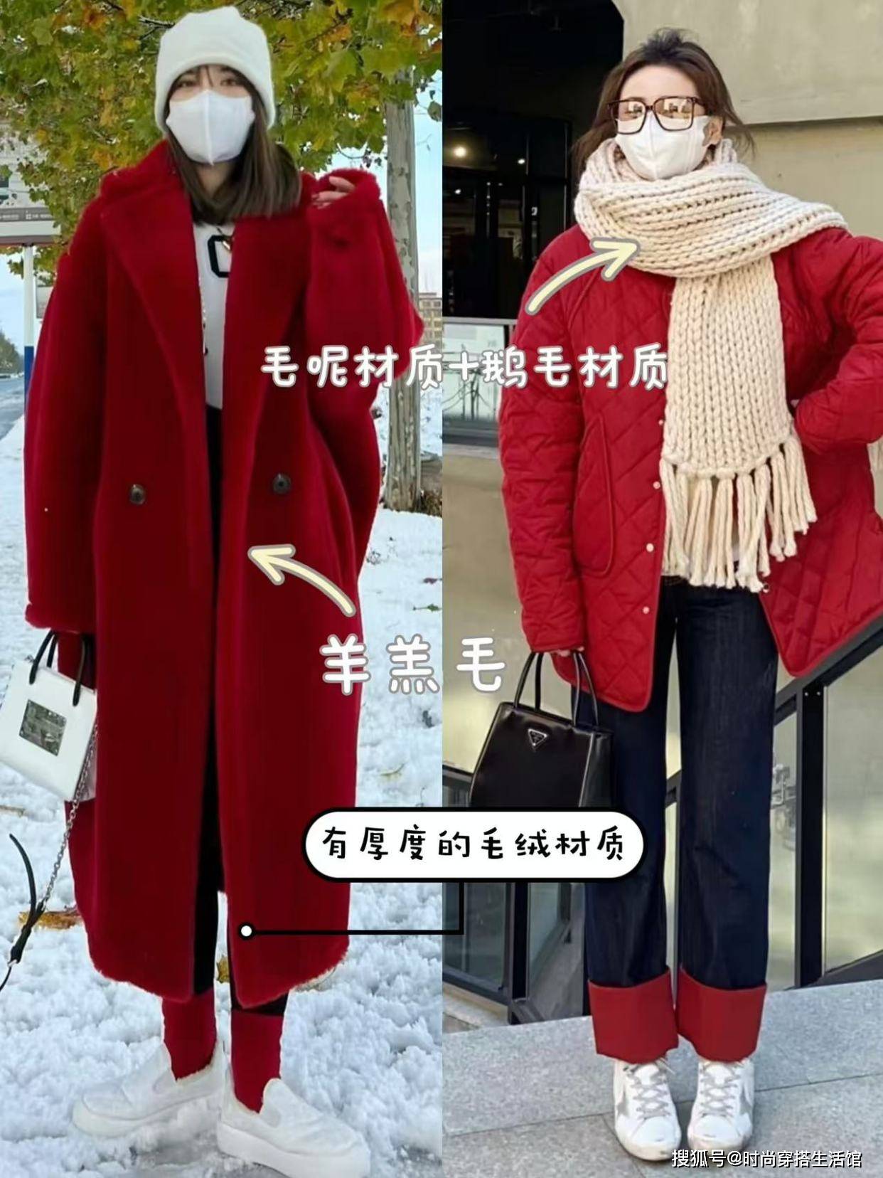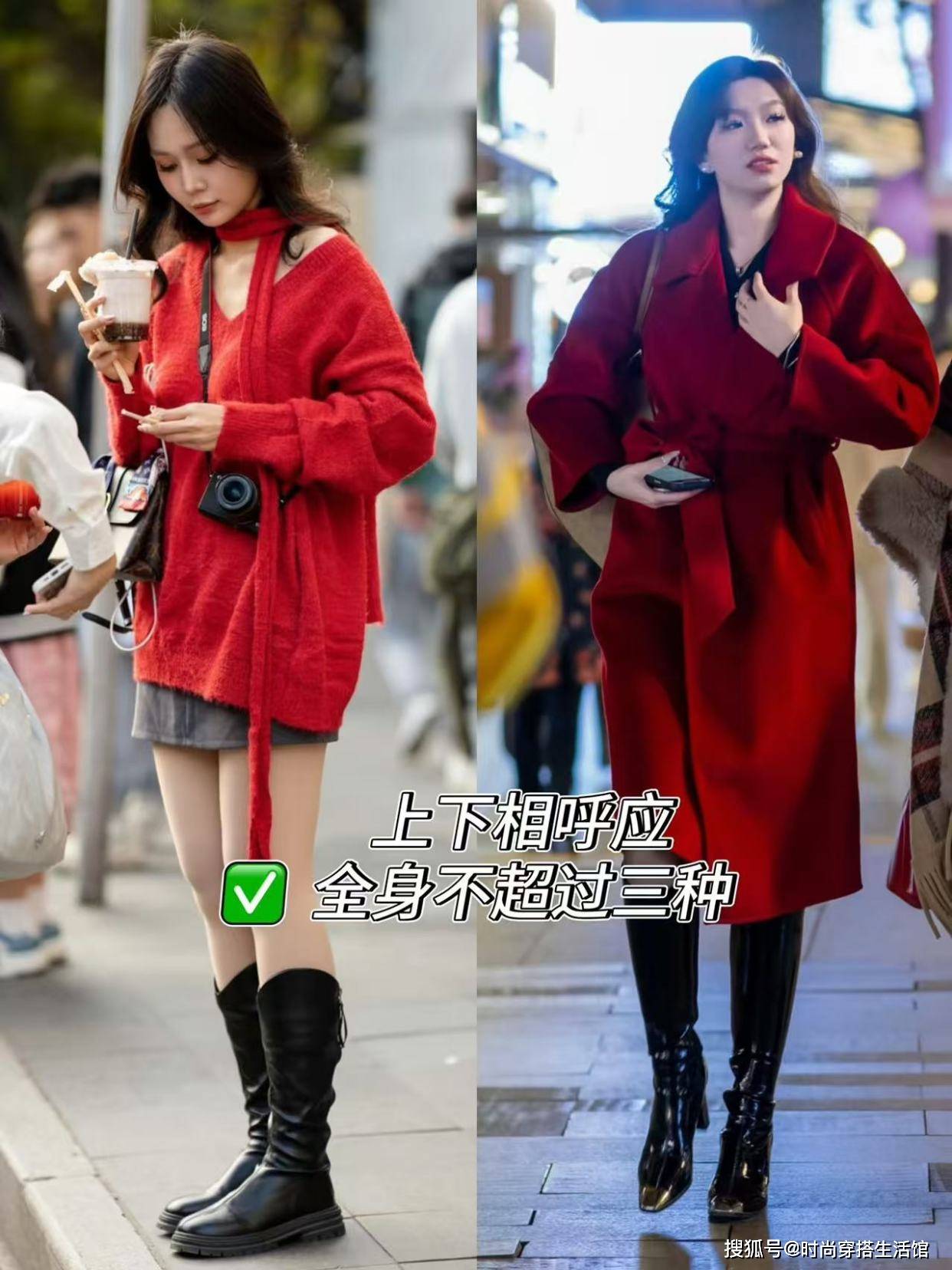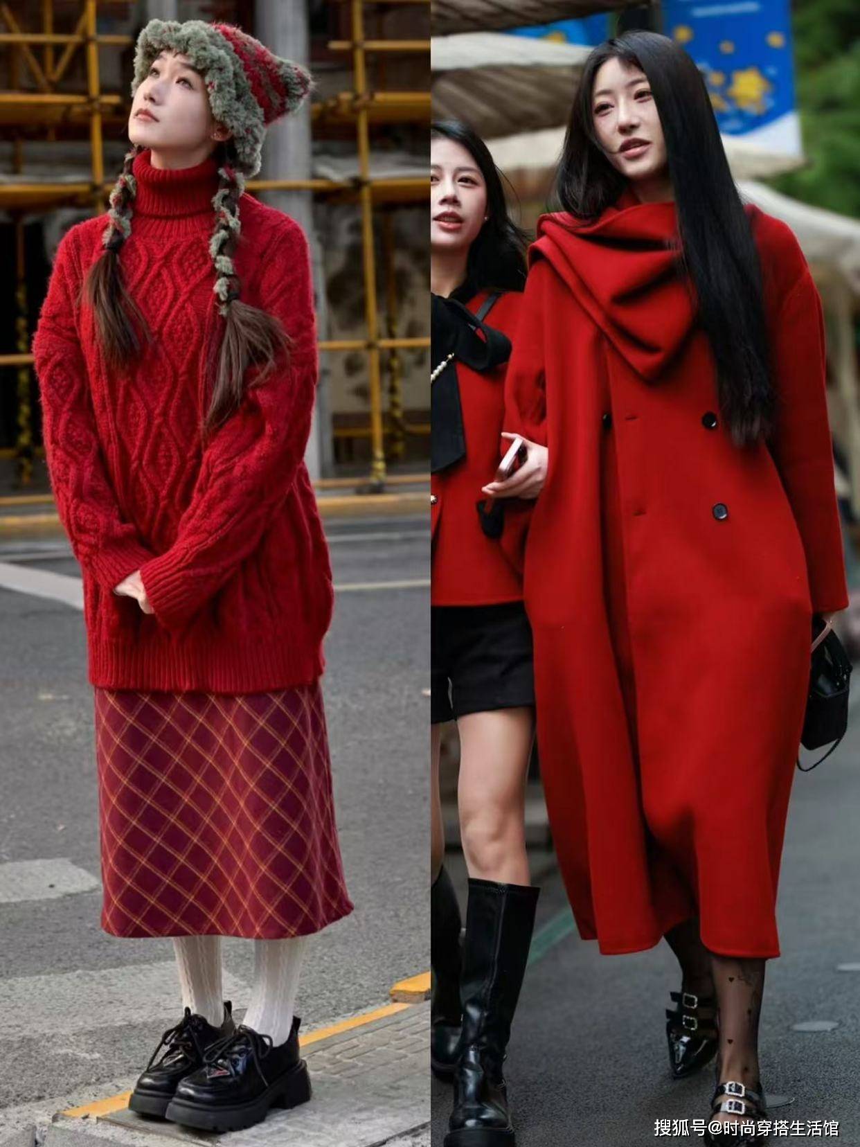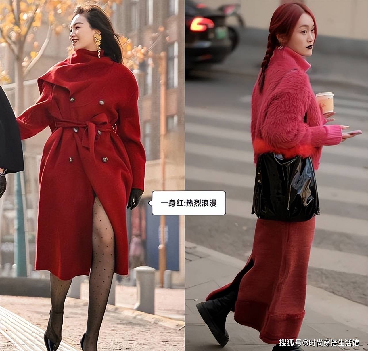 ⑵冬季穿衣一身红,时尚夺目又浪漫多情