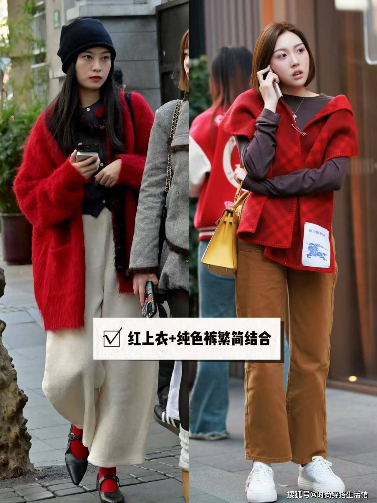 降温后去上海才发现:满大街都是“一身红”打扮,洋气喜庆又高级