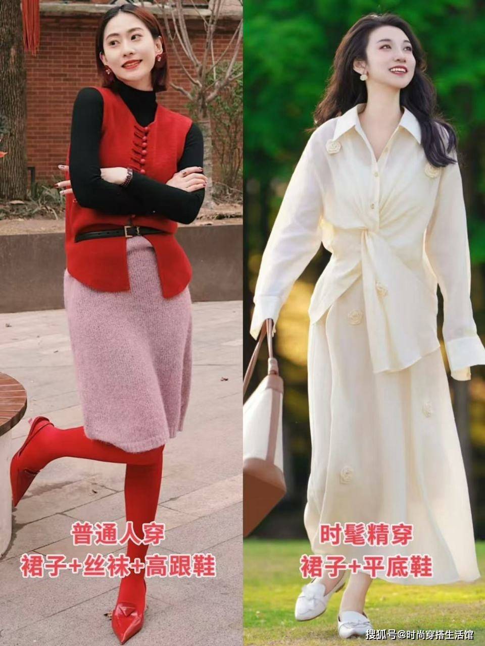 春天穿裙子时,尽量不要配丝袜、高跟鞋!换成这3双会更洋气好看