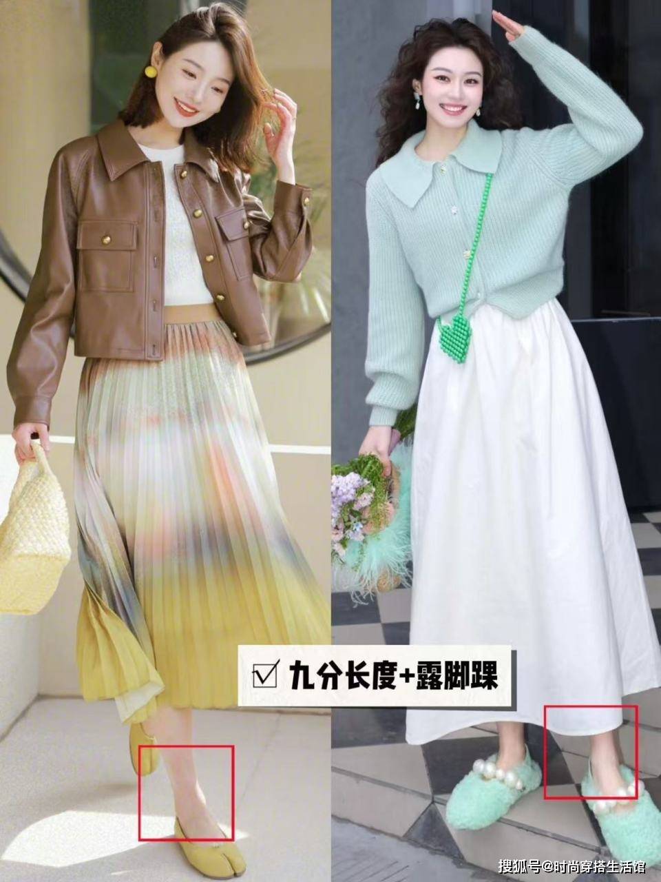 如果你是身高不足160的小个子女生,但是想要穿出大长腿的话还是需要借鉴一些穿搭技巧和方式,建议大家可以选择九分长度的半身裙,露出纤细的脚踝线条,从而搭配平底鞋会更加的舒适和显轻盈。
