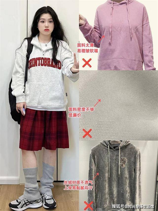 很多小姐姐在选择卫衣的时候,往往会没有注意卫衣的面料,就随便乱穿卫衣显得整体气质下降,像是密度不够、支数低软塌面料穿在身上的话容易显廉价和土气,其次像那些不够透气的丝绒质地或者是过硬、粗糙的面料也不适合用在卫衣上,像春季的卫衣建议大家选择高支数高密度的双面和毛圈的卫衣面料。