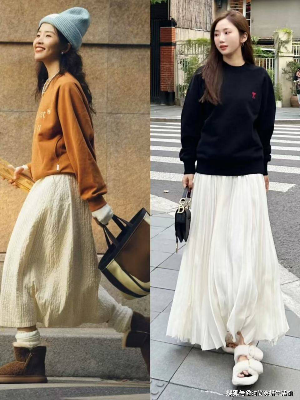 第三种:卫衣+半裙,优雅有女人味