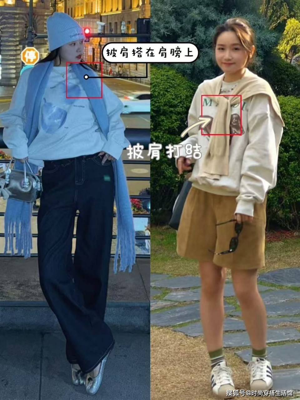 技巧③卫衣+披肩式叠穿,转移视线