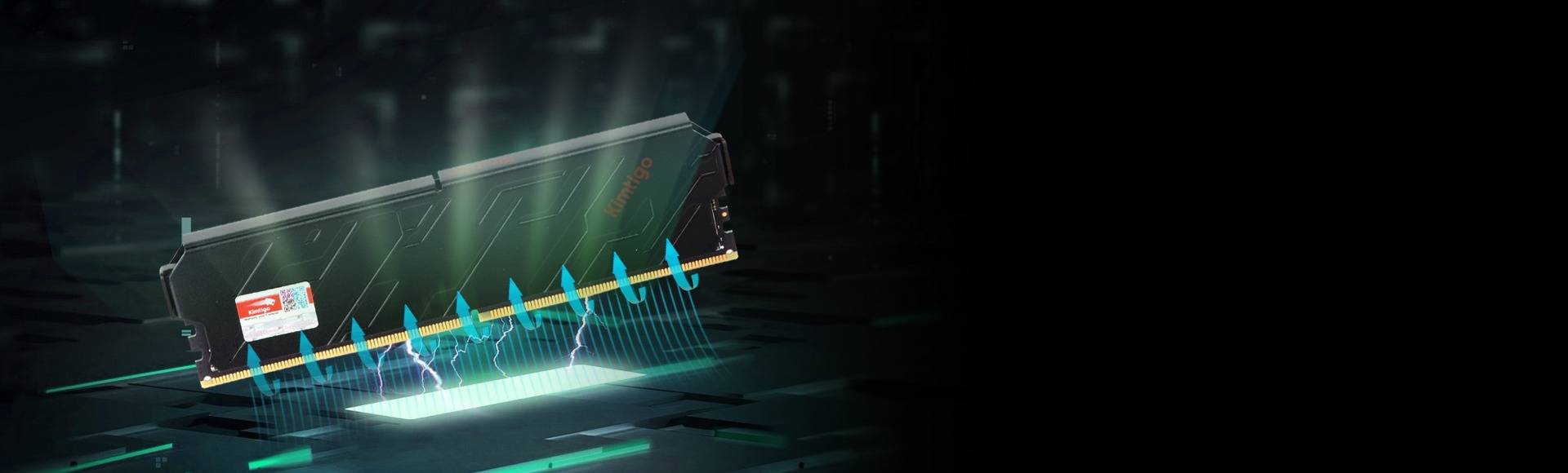 DDR5内存在高负载下运行时会产生一定的发热,这时硬件的散热效率就显得尤为重要,金泰克速虎-朱砂痣 DDR5 6000内存条使用了设计独特,性能优异的独家散热装甲覆盖在内存条PCB板外侧。这款产品的散热装甲采用铝合金材质一体冲压成型,并搭配散热硅胶条完美贴合前后马甲,迅速将内存颗粒的发热传导到散热装甲。在风道布局合理的情况下,能大大降低内存发热导致电气元件寿命下降的风险。