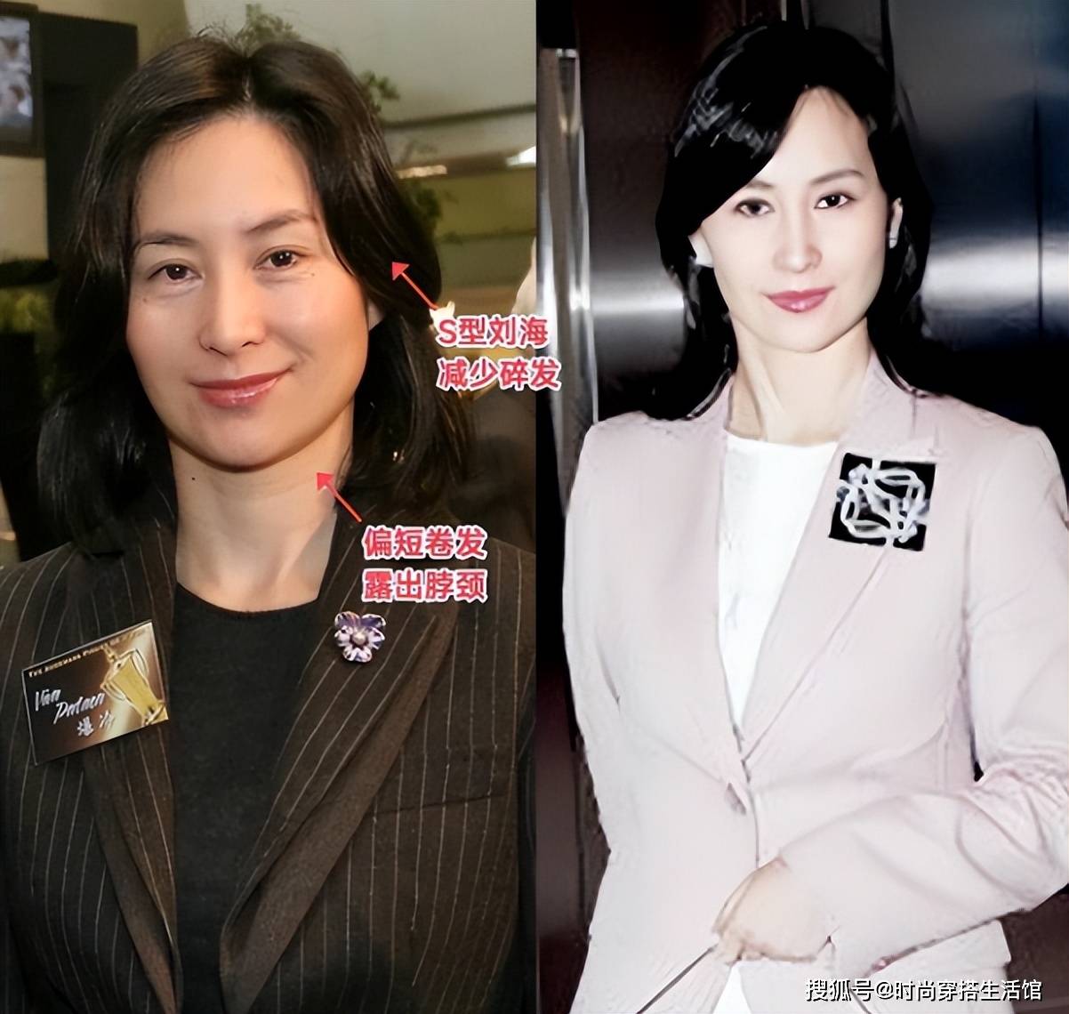 纵观何超琼大多数的造型,你会发现她在发型的挑选上还是非常讲究的,一般很少会出现直发的款式,像这种披肩长度的微卷发,不仅可以很好的增加女人味,对于面部的修饰效果也很明显。年龄的增长,随时而来的就是肌肤下垂和皱纹的出现,如果头发过于贴头皮,就会暴露面部的衰老痕迹。