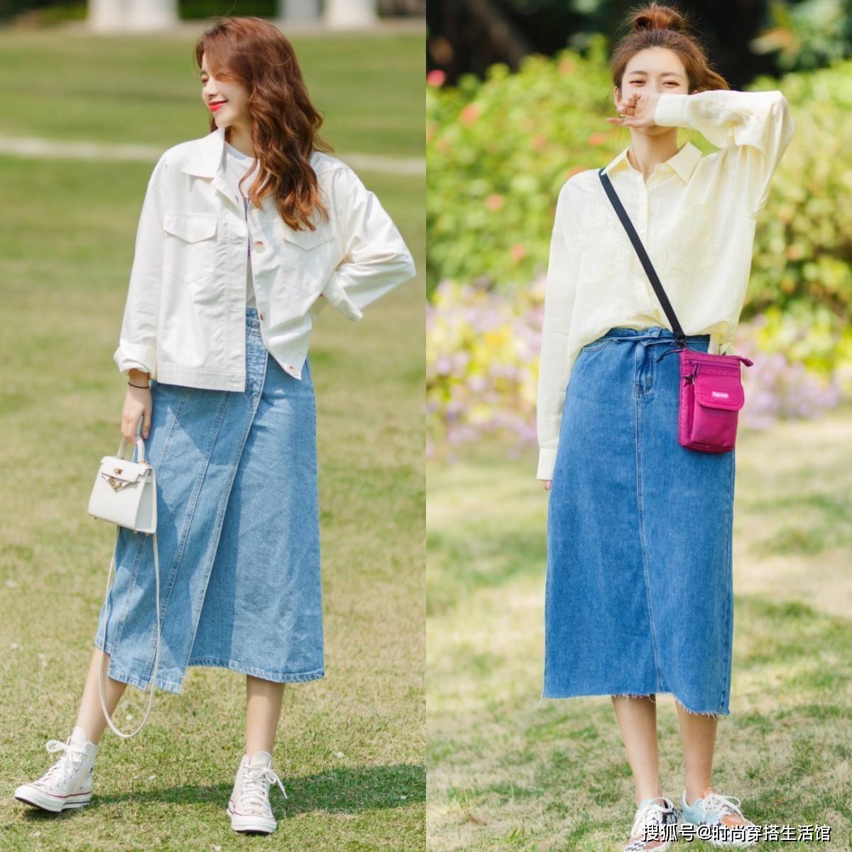 若是你的年龄在30岁左右,那不如借鉴一下这位博主的穿法,用长款牛仔裙搭配低帮板布鞋。既能打造出减龄效果,又不会有装嫩的嫌疑,同时还能很好地修饰腿部线条,腿型不直的女性可千万别错过!