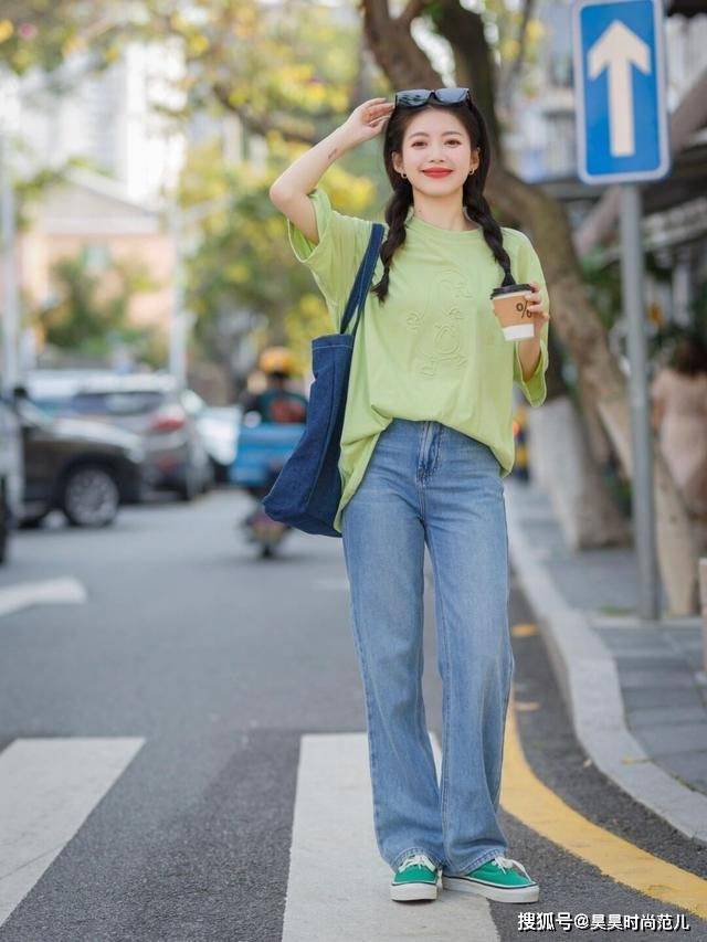 T恤搭配牛仔裤,初夏的经典时髦穿搭,简单好搭又不容易出错