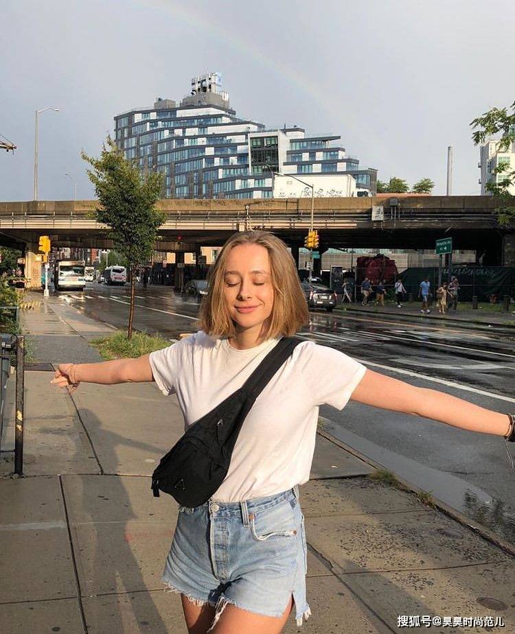 当然,在选择白色T恤,搭配牛仔裤的时候,不要只会搭配牛仔长裤,用百搭的白色短袖T恤,搭配减龄时髦的牛仔短裤穿搭,也是个非常不错的选择。宽松显瘦的短袖T恤,与性感时髦的开叉牛仔短裤穿搭,时髦感更佳。