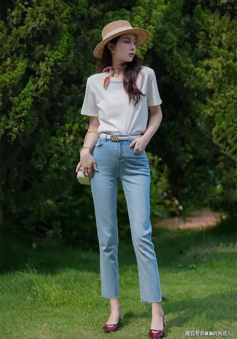 下面就一起来看看,今年夏天,都有哪些简单好搭的T恤+牛仔裤穿搭示范。