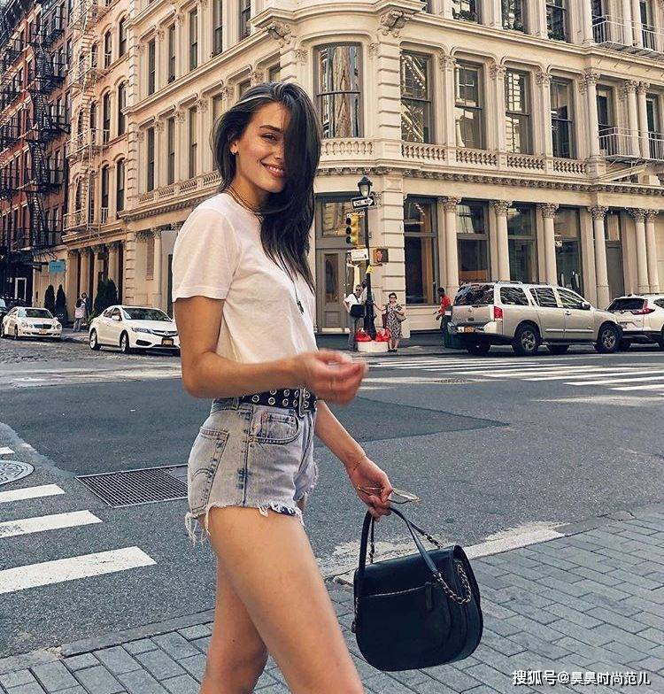 只是在选择牛仔短裤的时候,可以根据自己的喜好,选择牛仔短裤,或者是牛仔热裤穿搭。同样的扎腰穿搭方式,将简单的T恤+牛仔裤穿出了让人羡慕的优雅知性美感。