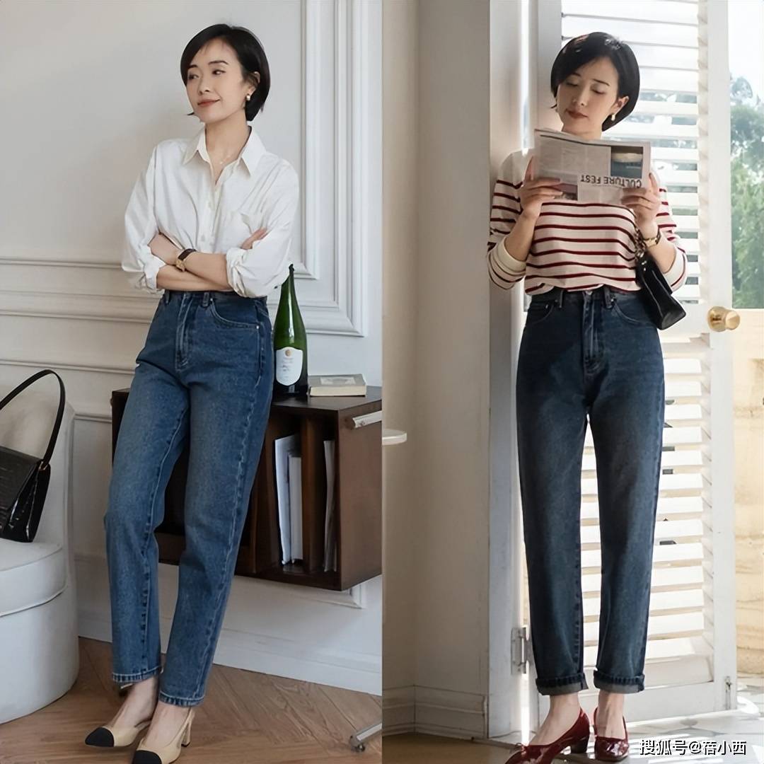 直筒九分裤堪称“腿型救星”,尤其适合胯宽、腿不直的姐妹,硬挺的牛仔或棉质面料能自然修饰腿型,裤脚刚好落在脚踝上方2-3cm,可以露出最纤细的部位,视觉上拉长腿部比例。