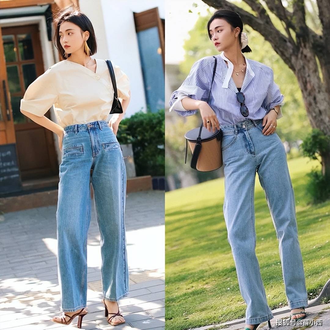 搭配的时候,重点在于把上衣塞进裤腰,再用细腰带强调腰线,小个子穿也能秒变三七分身材,比如这种短衬衫塞进高腰的直筒牛仔裤里,就很显腿长哦。