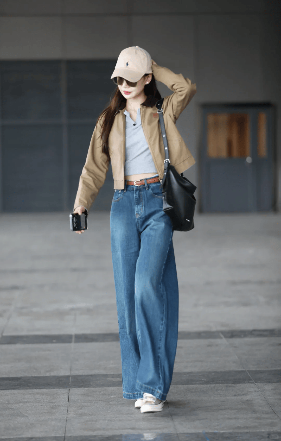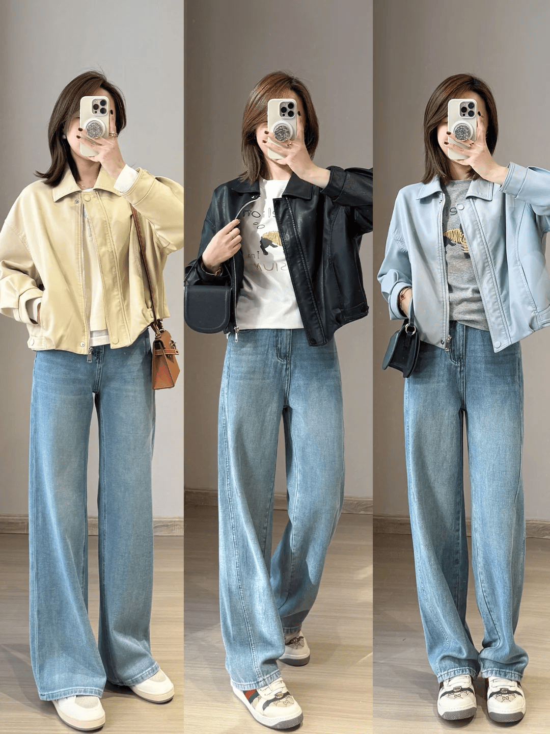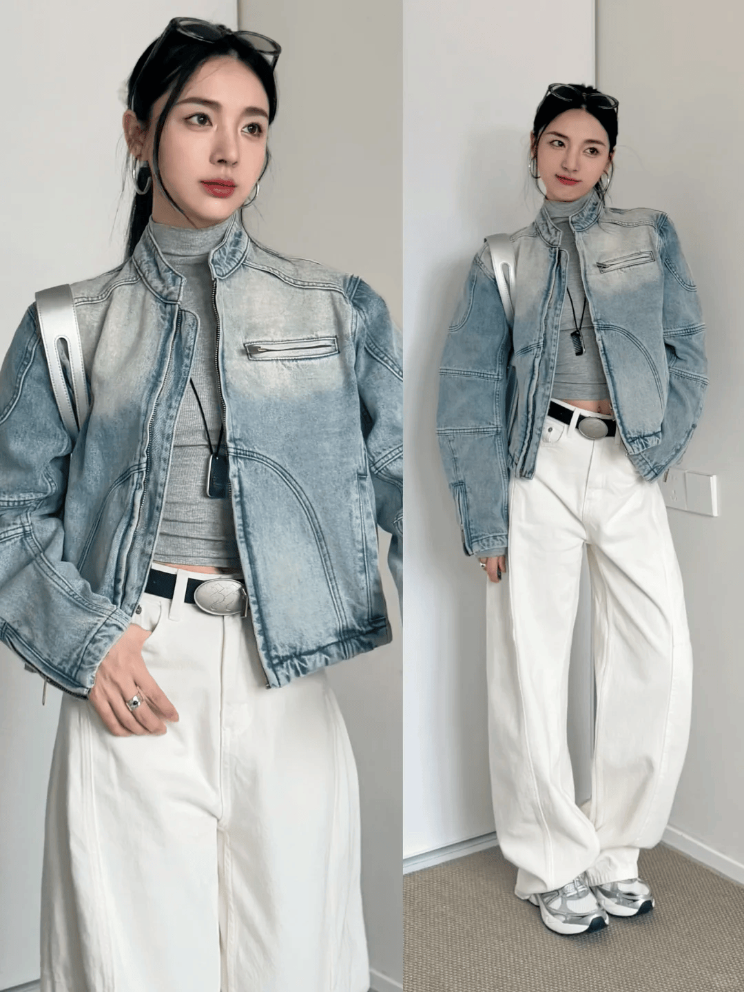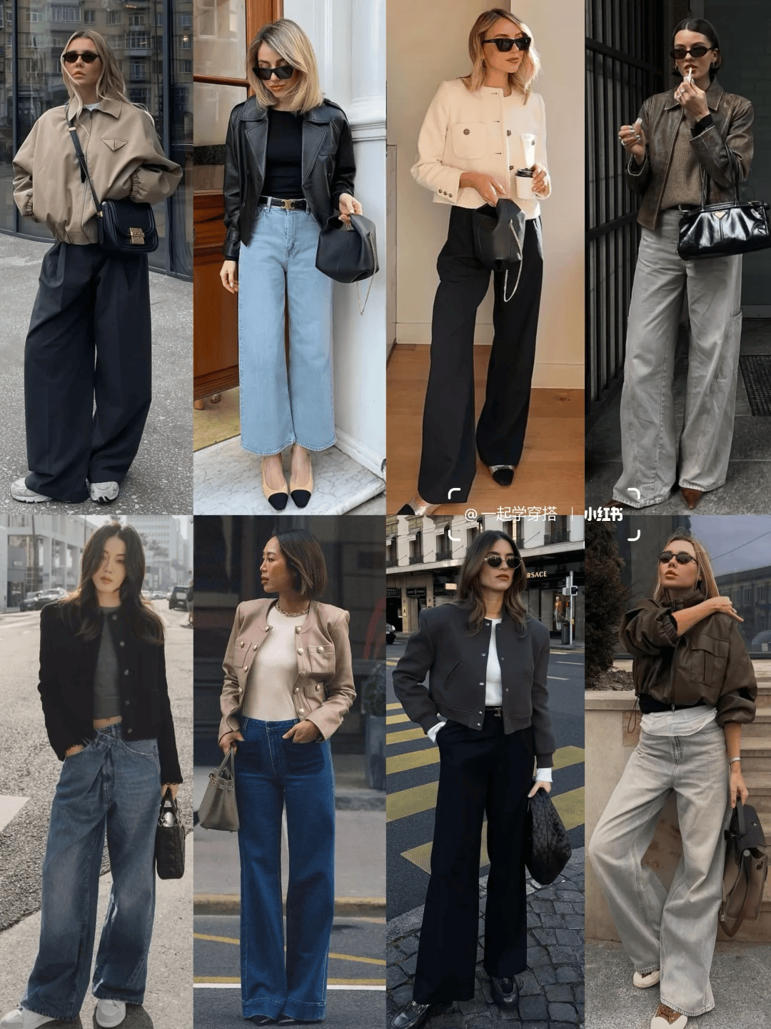 三、短款夹克 + 阔腿裤:休闲随性的日常风