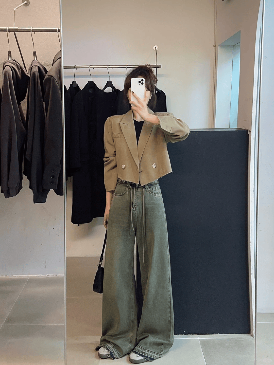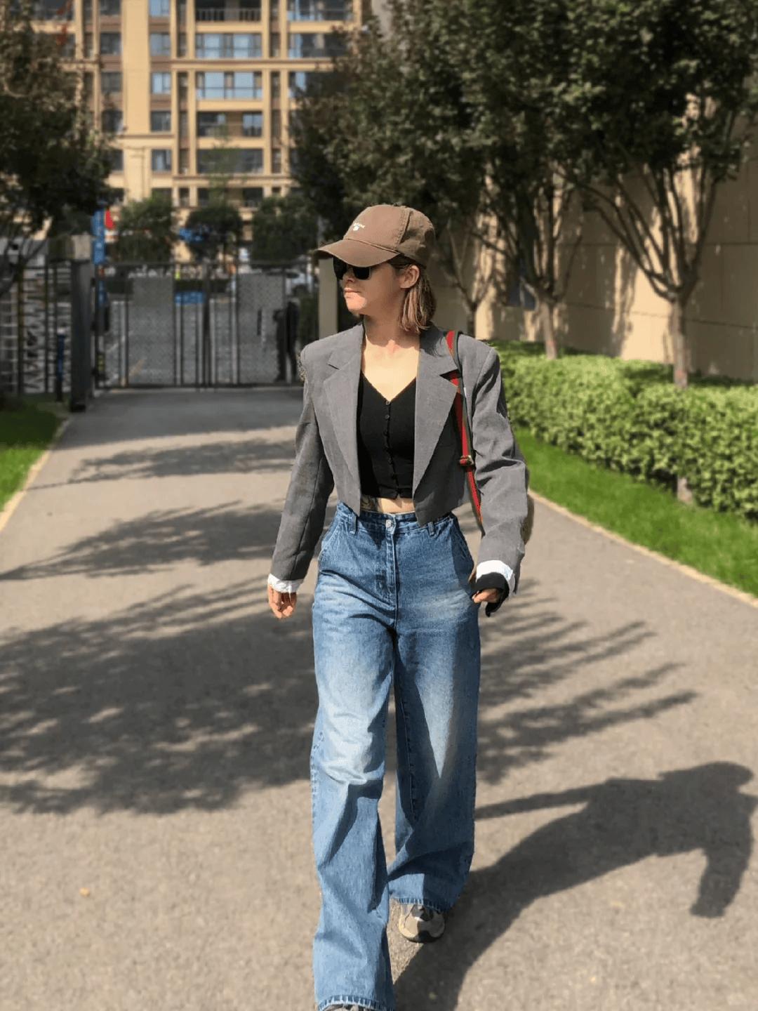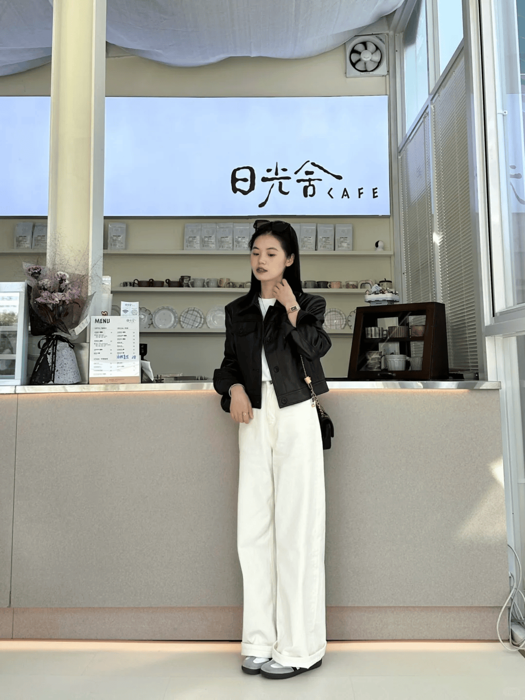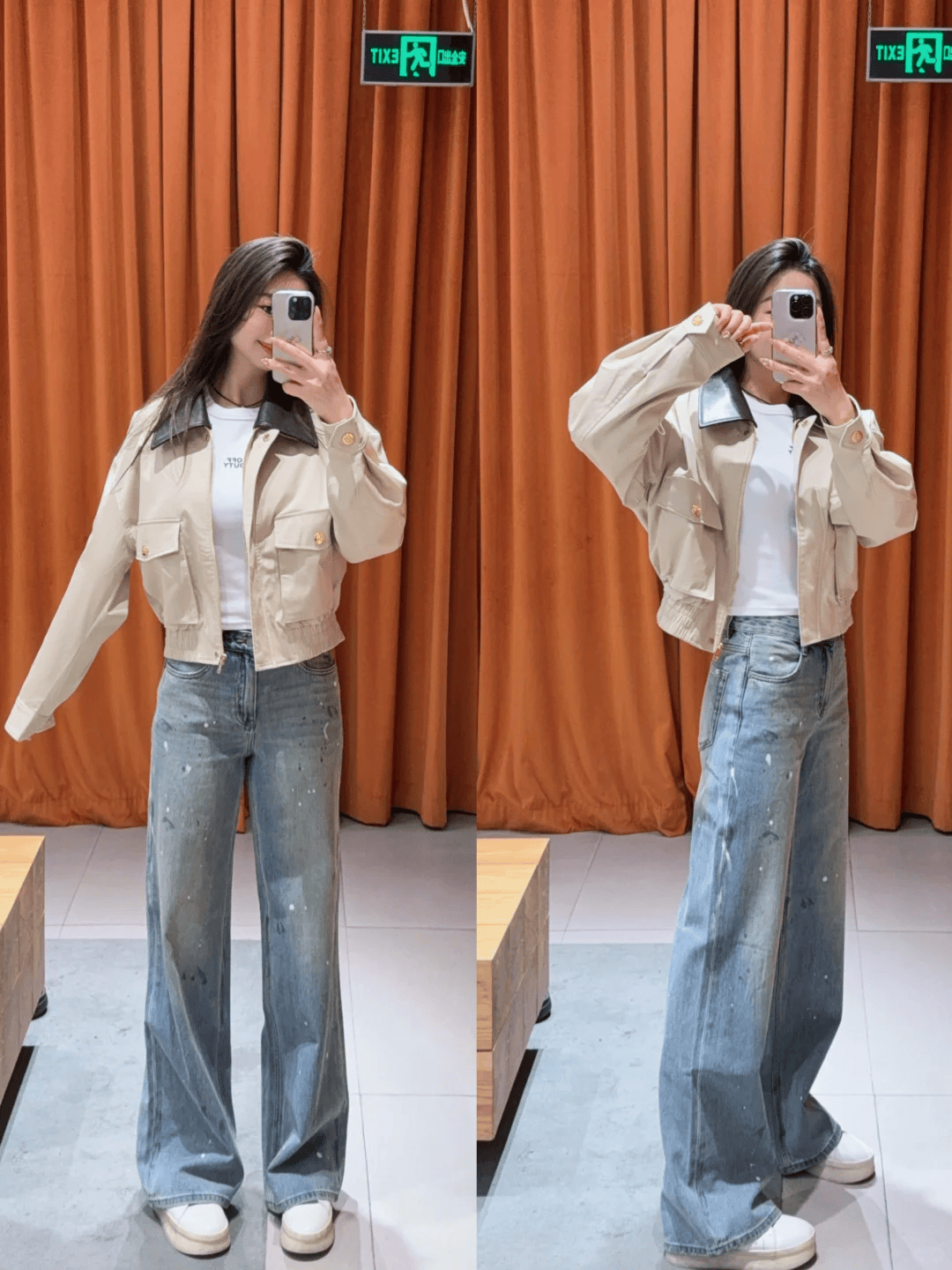 三、短款夹克 + 阔腿裤:休闲随性的日常风