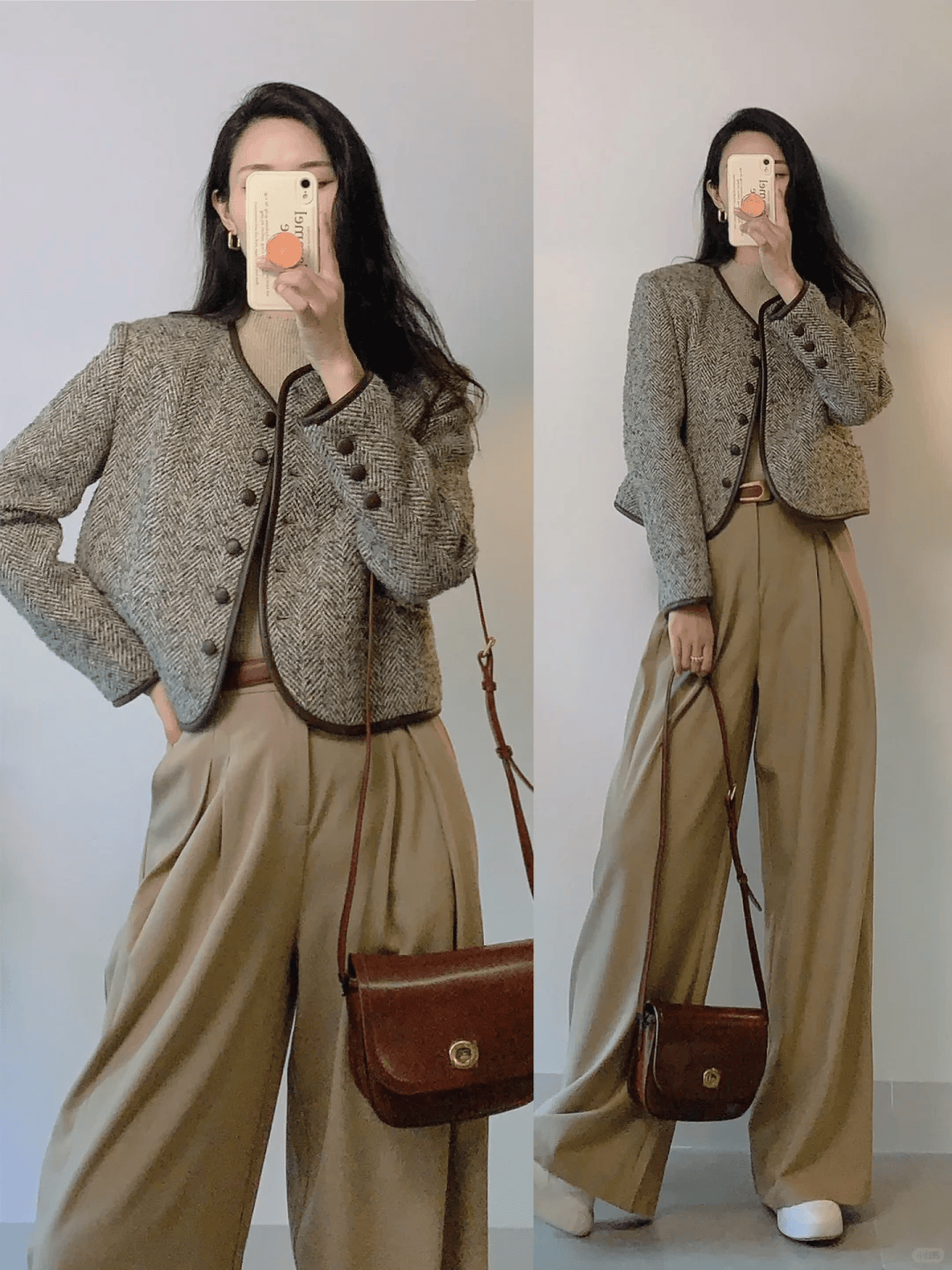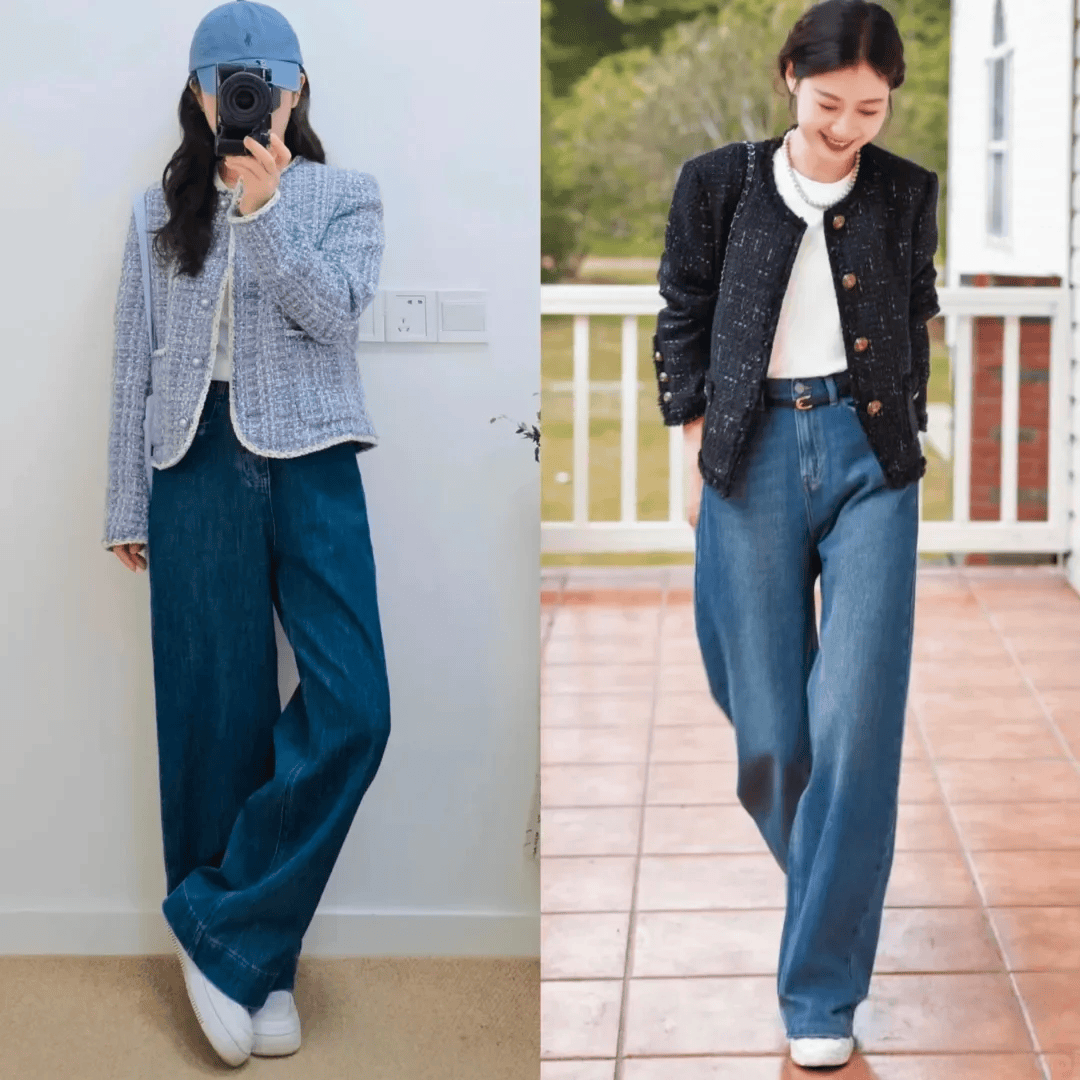 一、短款小香风外套 + 阔腿裤:优雅知性的女神范