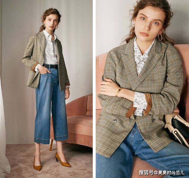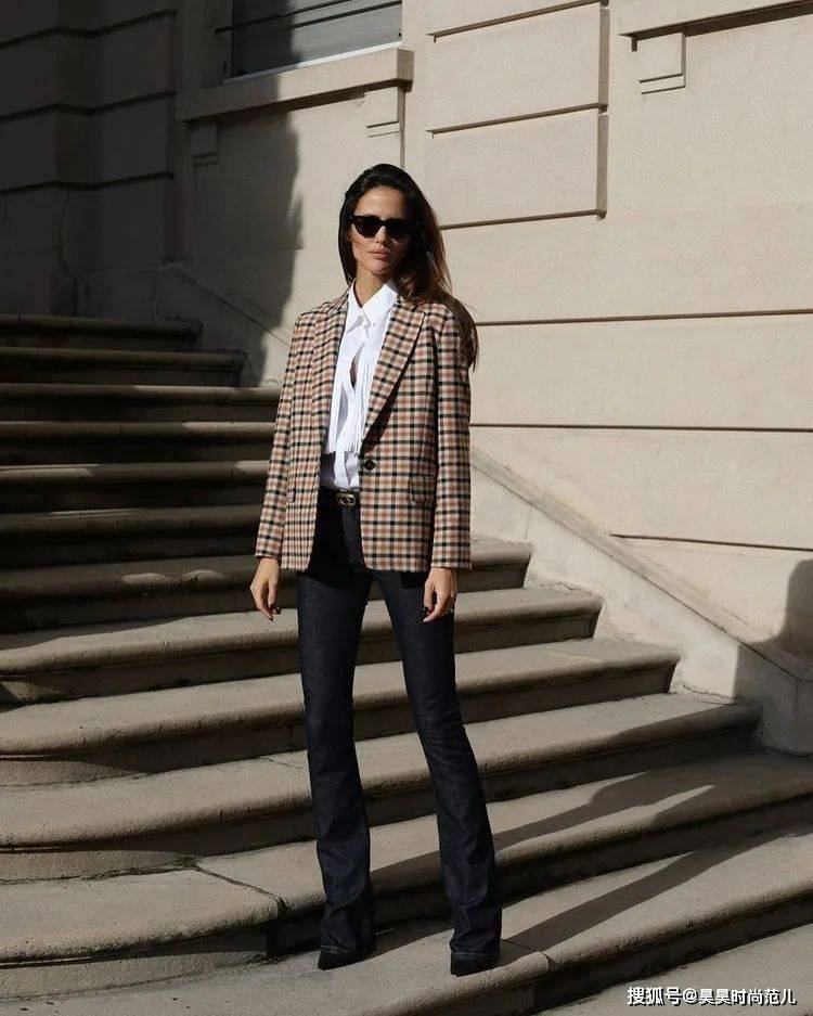 格子西装+直筒牛仔裤,经常穿纯色西装,偶尔换上一件减龄时尚的格子西装,再搭配一条减龄时髦的高腰直筒牛仔裤穿搭,显瘦显高的同时又不失干练女人味儿。