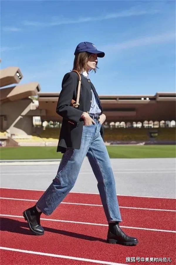 黑色西服+蓝色牛仔裤+马丁靴,简单的黑色小西装外套,与减龄时髦的牛仔裤穿搭在一起,同时配上黑色的马丁靴穿搭,穿在身上显瘦又高级,尽显优雅女性魅力。