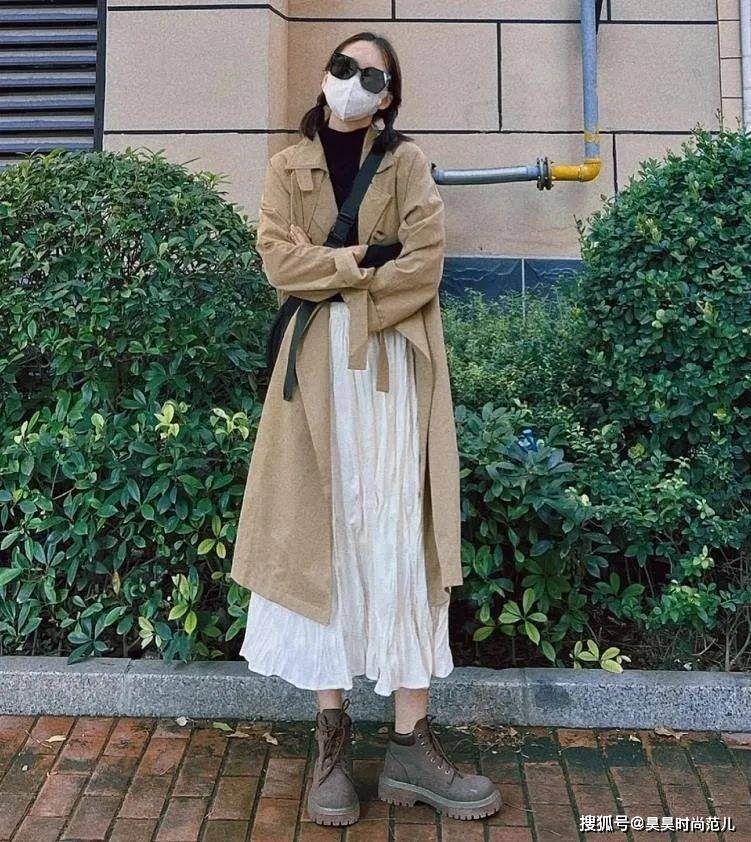 同时风衣的版型大有廓形感,所以可以在很大程度上遮住身上的赘肉,这个时候再搭配一条漂亮的裙子穿搭,时尚感更佳。