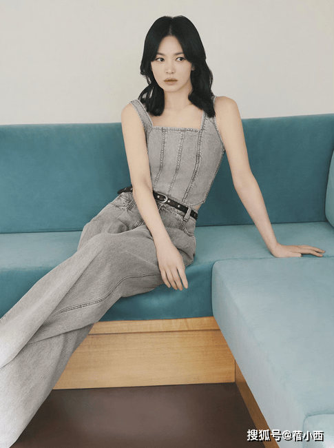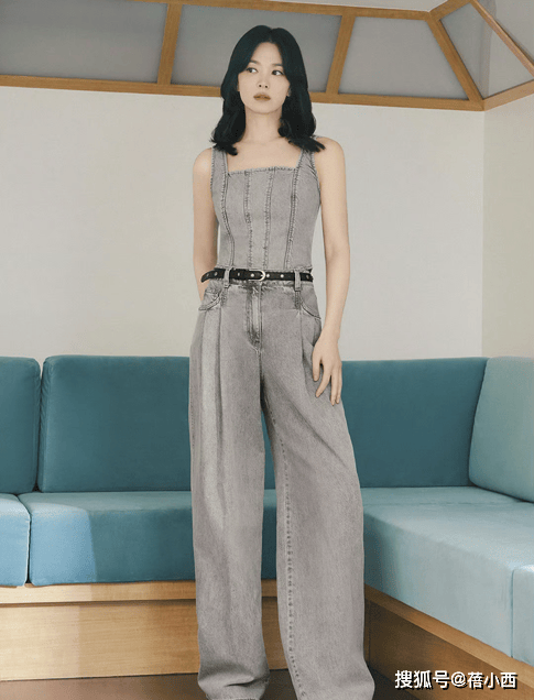 宋慧乔身上的这件牛仔套装是个石灰色,而上半身选用了一个吊带的设计,不仅清凉,看起来也不会过度性感,搭配上下半身的牛仔裤,很有大学生的味道。