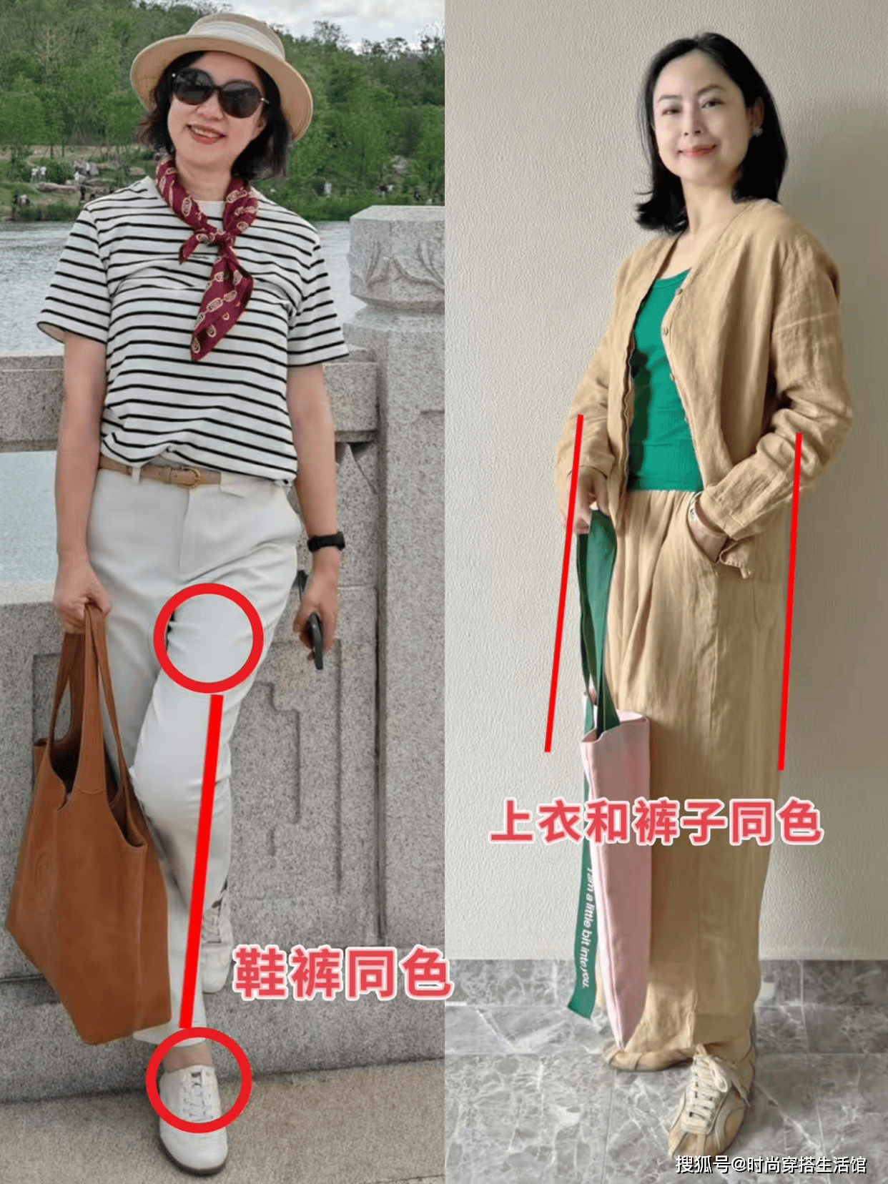对于夏天来说很多人会问究竟“如何穿衣才能显高”,这个问题是一年四季都常听到的,对于上了年纪的女性来说,很多时候会为了避免身材发福变形而影响塑形,那么夏季穿搭中选择同色穿搭,即上衣和裤子颜色相同,或者是裤子和鞋子颜色相同,通过延伸视觉效果来纵向拉伸比例,从而起到很好的显高效果。