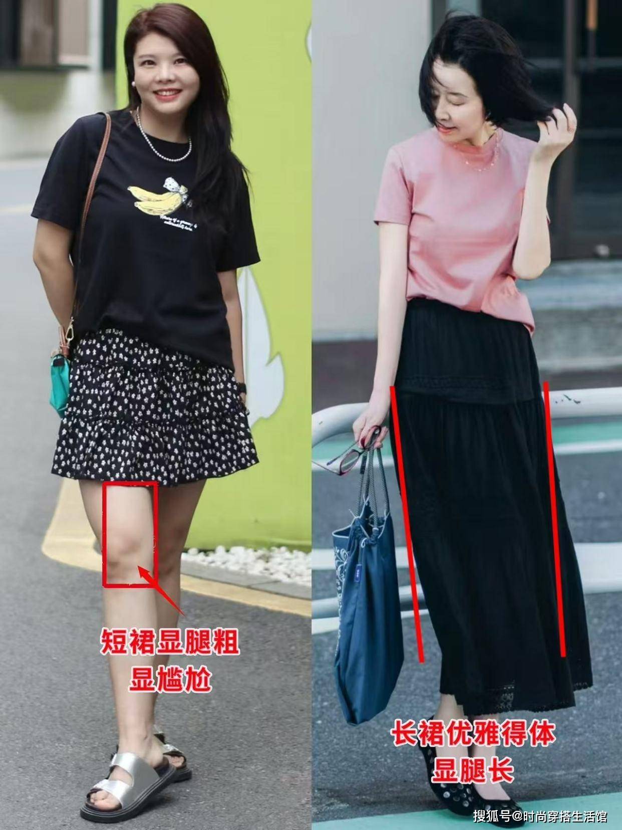 关于中年女性随着年龄的增长,腿部线条没有像年轻时候那么精致流畅了,同时身材比例也会跟着发生变化,选择穿短裙的话就很容易“暴露”腿部线条,选择穿短裙会把腿部不够纤细的地方全部暴露出来,从而让身材比例看起来不太协调。