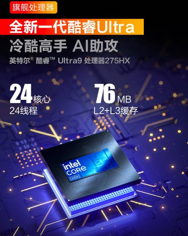 高性能表现一直是高端游戏本必备的条件之一,暗影精灵MAX作为高端游戏本也不例外,其搭载的酷睿 Ultra 9 275HX 处理器,宛如一颗强劲的“心脏”,8 个性能核与 16 个能效核协同构建 24 核心 24 线程超强架构,最大睿频可达 5.4GHz,L2+L3缓存共高达76MB,同时还配备32GB 5600MT/s的DDR5内存和配备主动散热的1TB大容量PCIe 5.0高速固态硬盘。此外,CPU 和 GPU 的性能释放可达 250W+,为整机性能奠定了坚实基础。