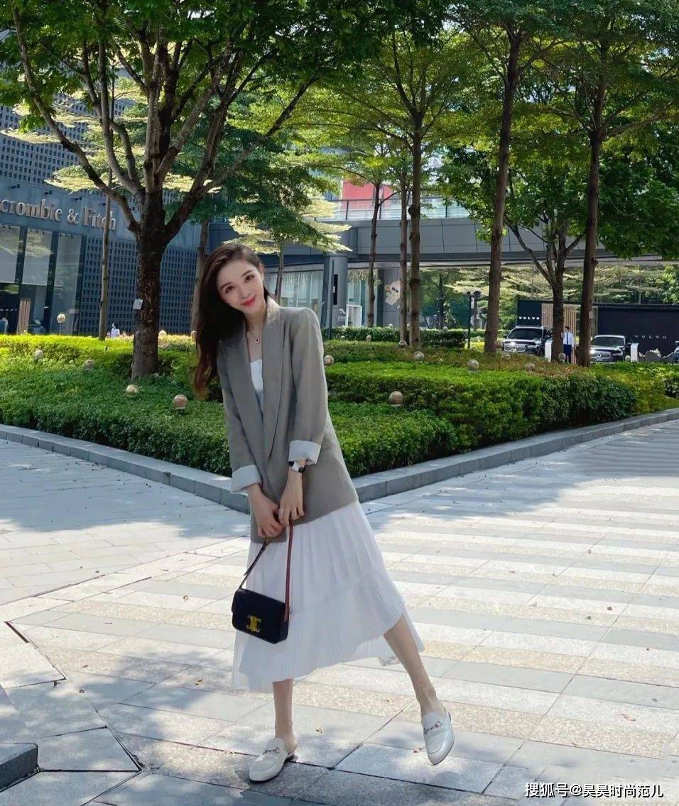 西服外套别再只会搭配牛仔裤,今年初夏西装+裙子穿搭,流行时尚