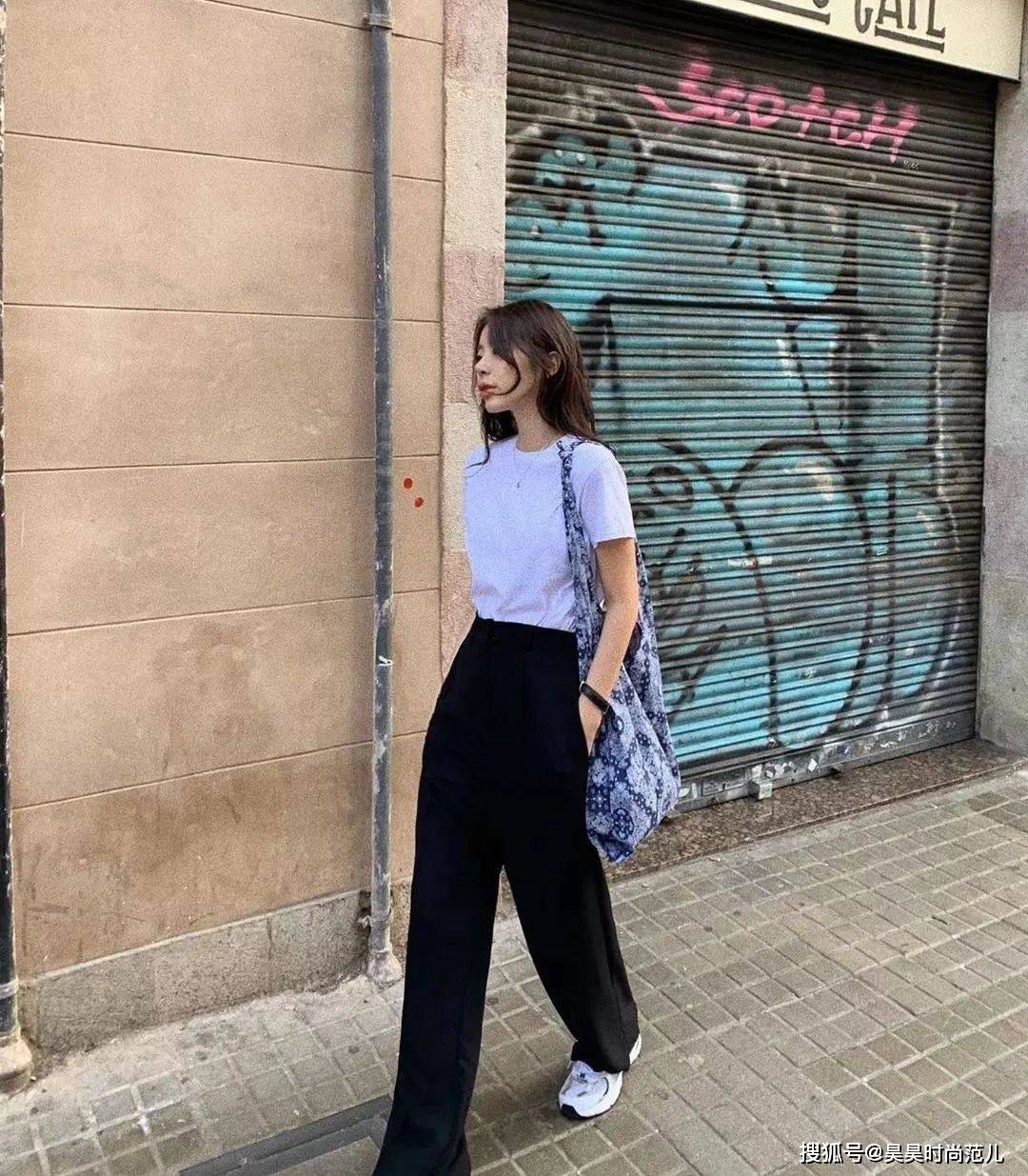 既然夏天来了,那么简单百搭的短袖T恤,自然也是必不可少的夏日时尚单品。利用简单百搭的白色T恤,搭配清爽舒适的黑色阔腿裤穿搭,简单的黑白色系搭配,不用过多的色调点缀,照样穿的让人羡慕。