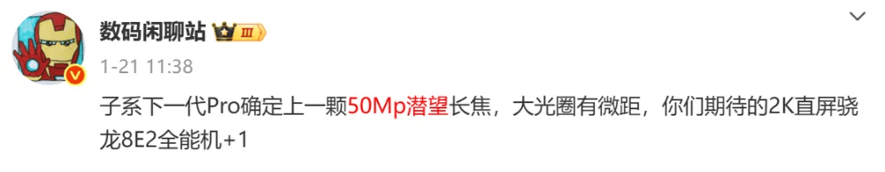 影像升级并不止主摄,博主还爆料,K90 Pro将把长焦镜头升级为5000万像素潜望长焦,拥有大光圈和微距,影像硬件进一步补齐短板。