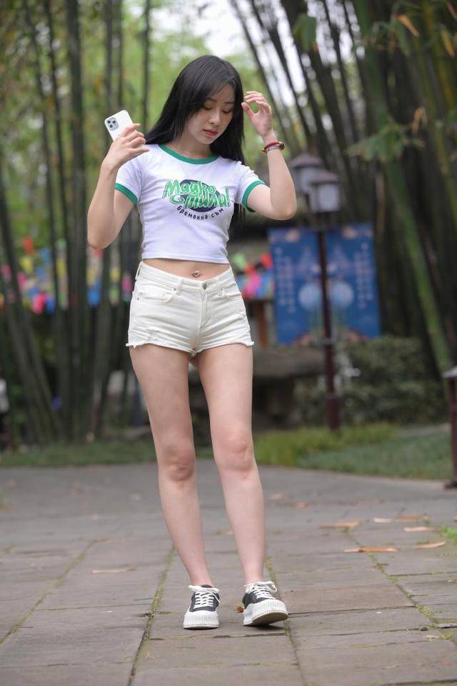 这种搭配不仅时尚,也非常实用。无论是出门逛街、约会还是旅行,都能穿出自己的风格,让人感到舒适自在。白色牛仔短裤和圆领短袖体恤衫的搭配,也很容易带出一种健康的生活方式,让人感到有活力和充满朝气。总之,白色牛仔短裤和圆领短袖体恤衫的搭配,是一种简洁清爽、青春活力的美感,无论是穿在哪里,都能让人感到舒适自在,展现出自己的独特魅力。