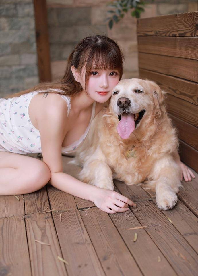 本期美女写真特意为大家分享一组主题为“仲夏夜之梦”的人宠摄影写真,希望喜爱宠物,尤其是喜爱金毛犬的朋友可以作为今后拍摄写真时的借鉴和参考。写真照片中,一位纯美少女身穿一件白色印花吊带背心,下身搭配一条蓝色牛仔短裤,旁边陪伴着一只憨态可掬、毛量浓密的大金毛犬。