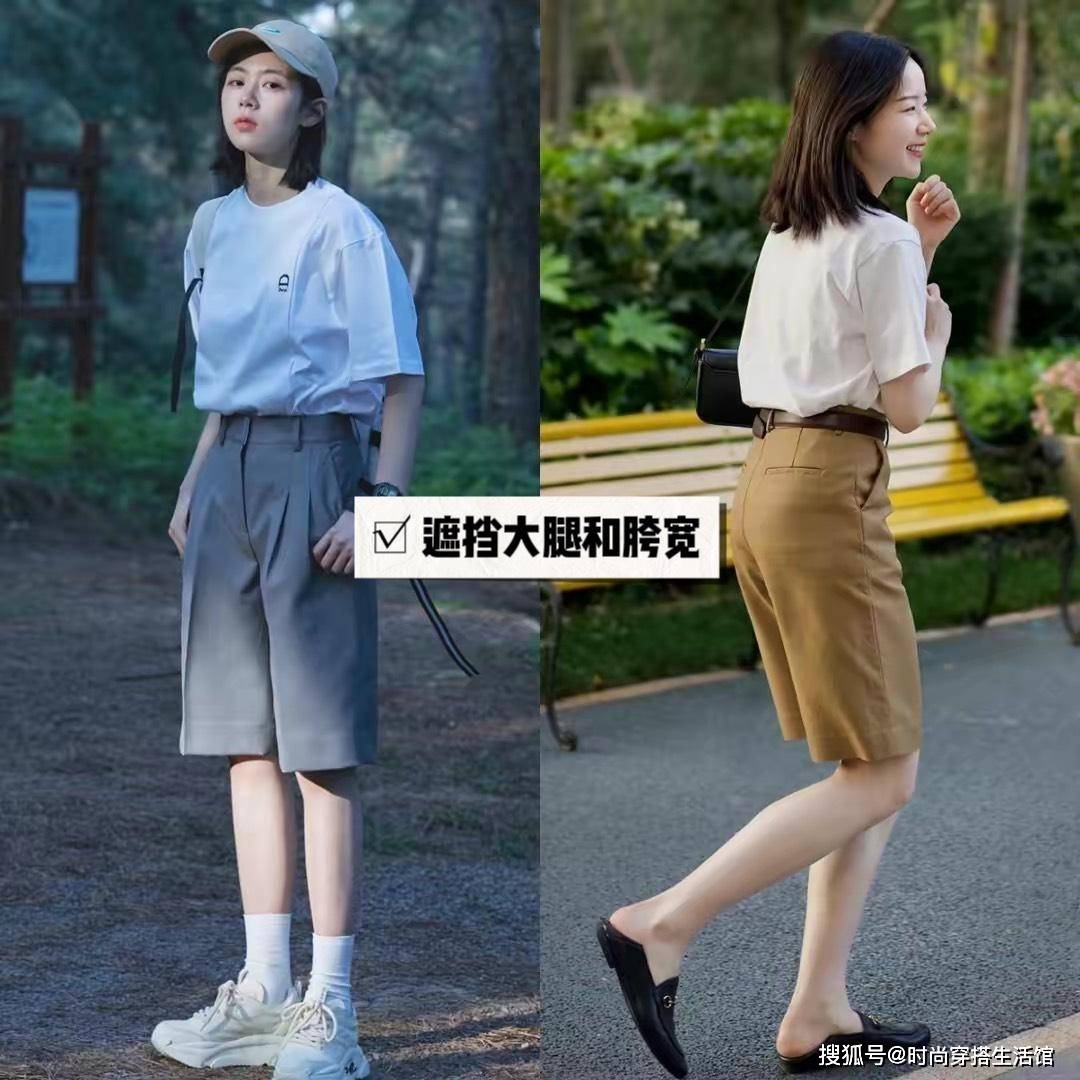 所以,如果下半身肉肉的妹子,选择直筒款式的百慕大短裤——宽度大概在裤腿与大腿超过一个半拳头,这种是最显瘦的。