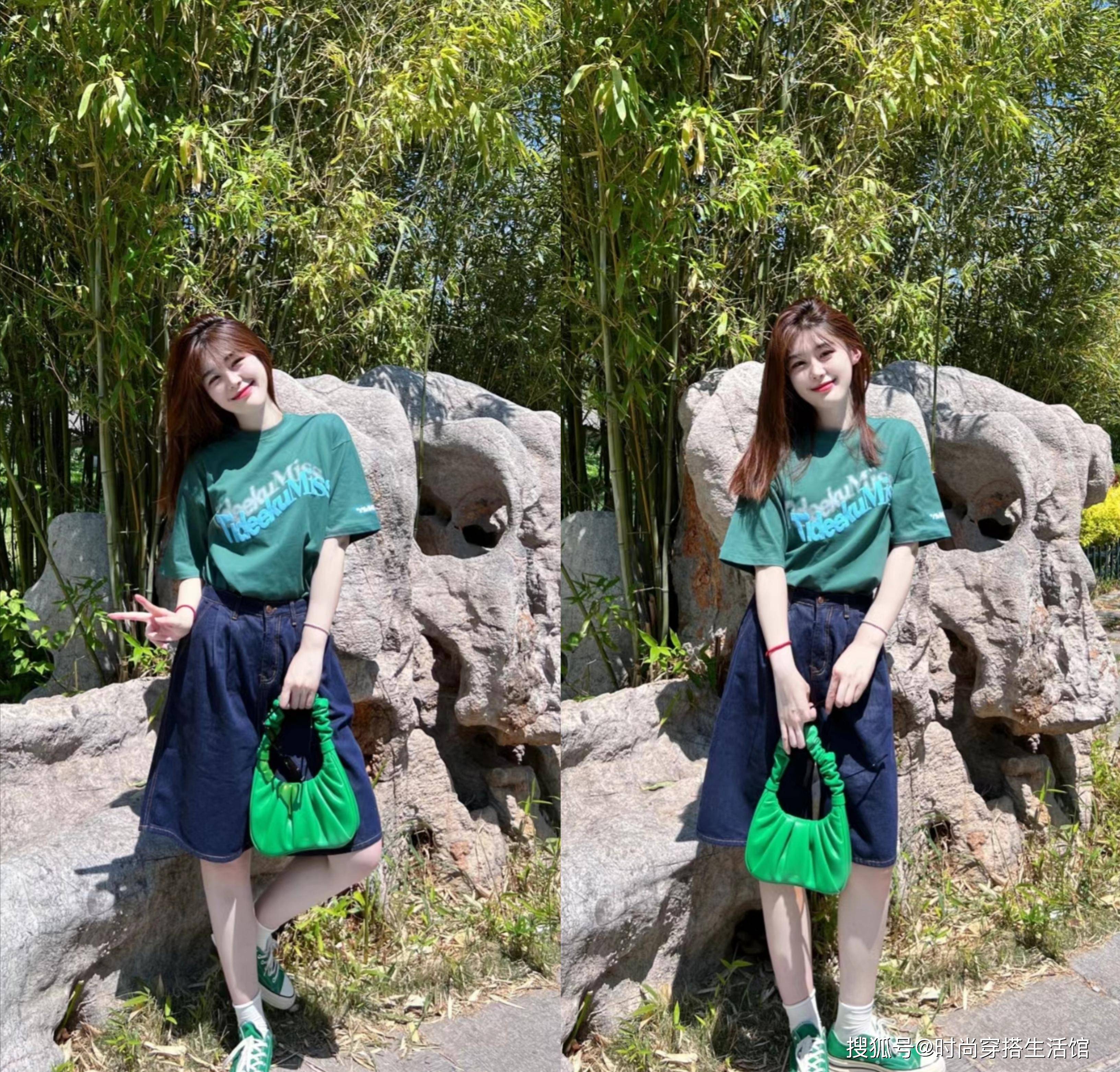 用T恤搭配牛仔短裤是最简单也是最减龄的设计,这样的衣服很适合青春期女生来选择,简单随意又能呈现出时尚效果。