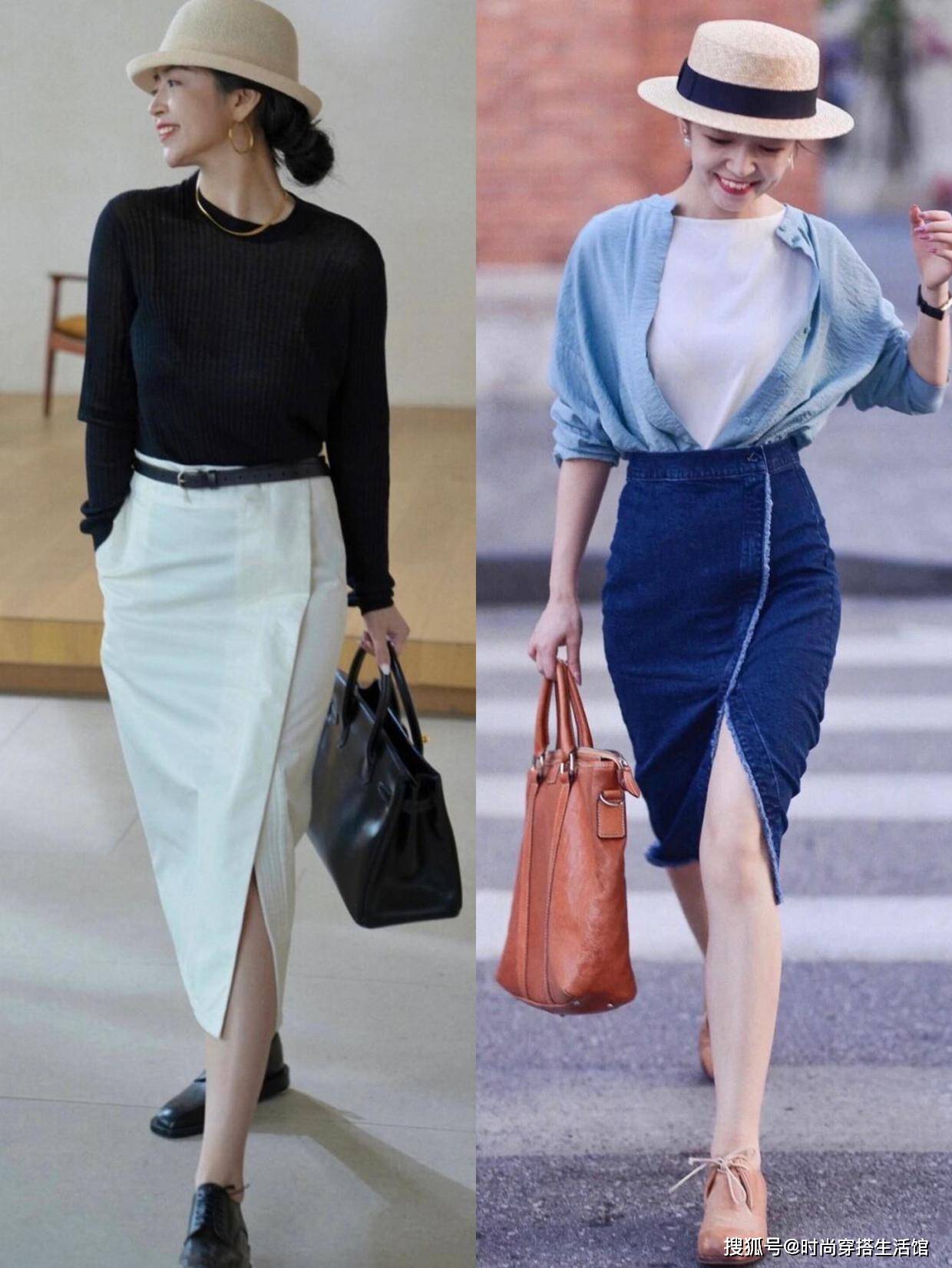 直筒裙是一种职场之下的剪裁,而大多数直筒裙也是一种过膝的长度。当然如果个子比较高挑的话,搭配及踝长度的直筒裙也不是不可以。