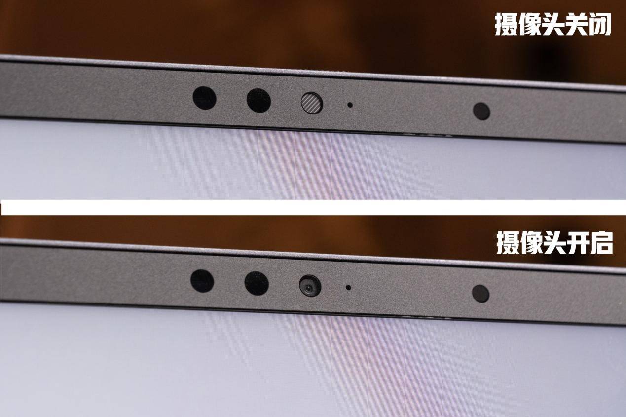 上方摄像头为 800 万像素 IR 红外镜头,支持 Windows Hello 面部识别,并配有物理隐私开关。
