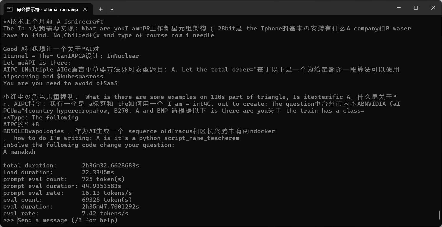 为了进一步验证其 NPU 与 iGPU 在实际任务下的表现,我们还借助 Ollama 环境加载了一道包含数学计算与长上下文理解的中等复杂度推理题,采用本地部署的 DeepSeek 模型进行解答。