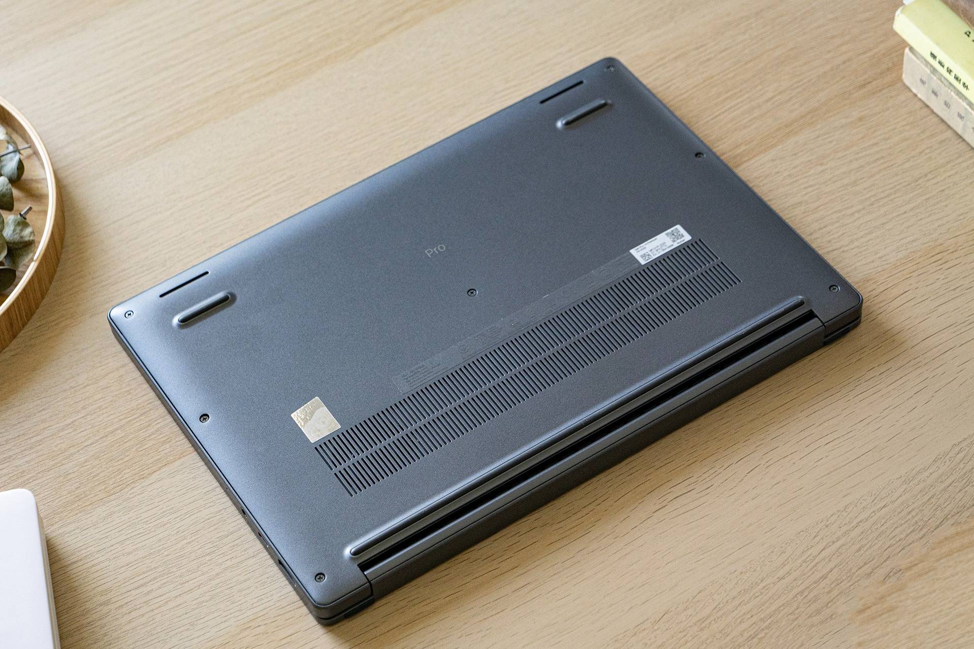 Dell Pro 14 Premium 在散热系统上做出了结构级的调整。它采用 双风扇 + 双热管 的模组配置,辅以大面积底部进风口与后部排风栅。